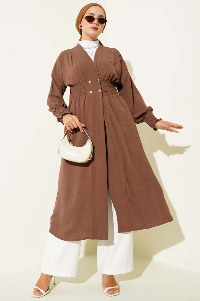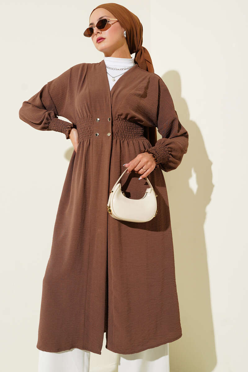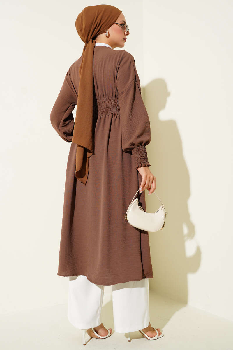 Kol Ve Bel Büzgülü Patlı Hırka Kahve