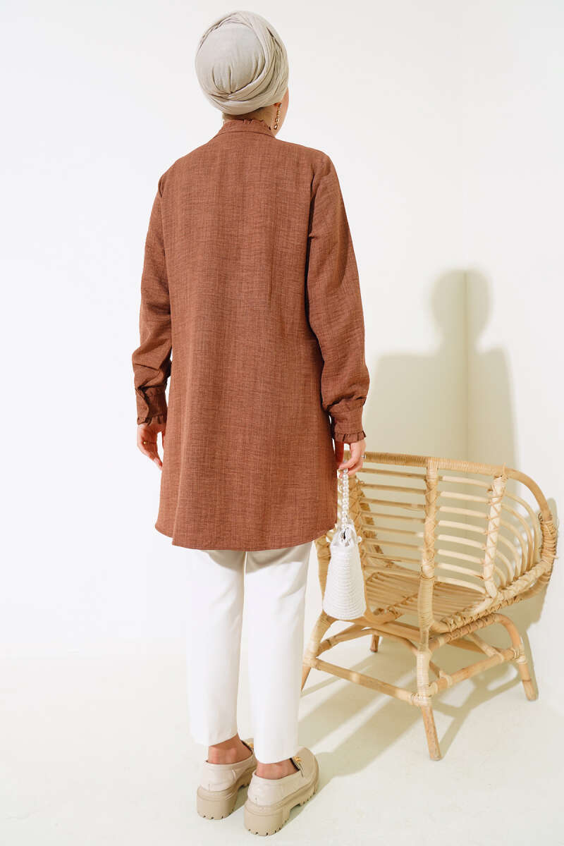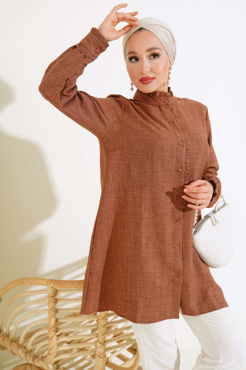 Kol ve Yaka Fırfır Detaylı Gömlek Kahve