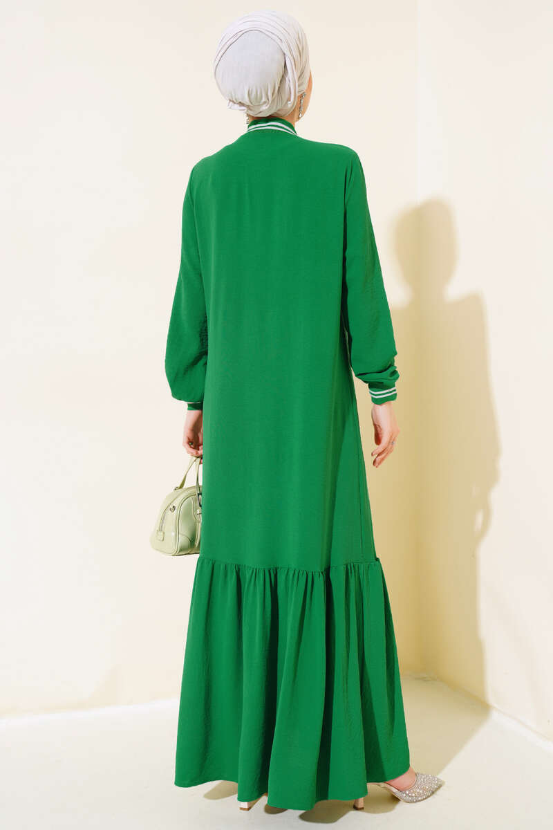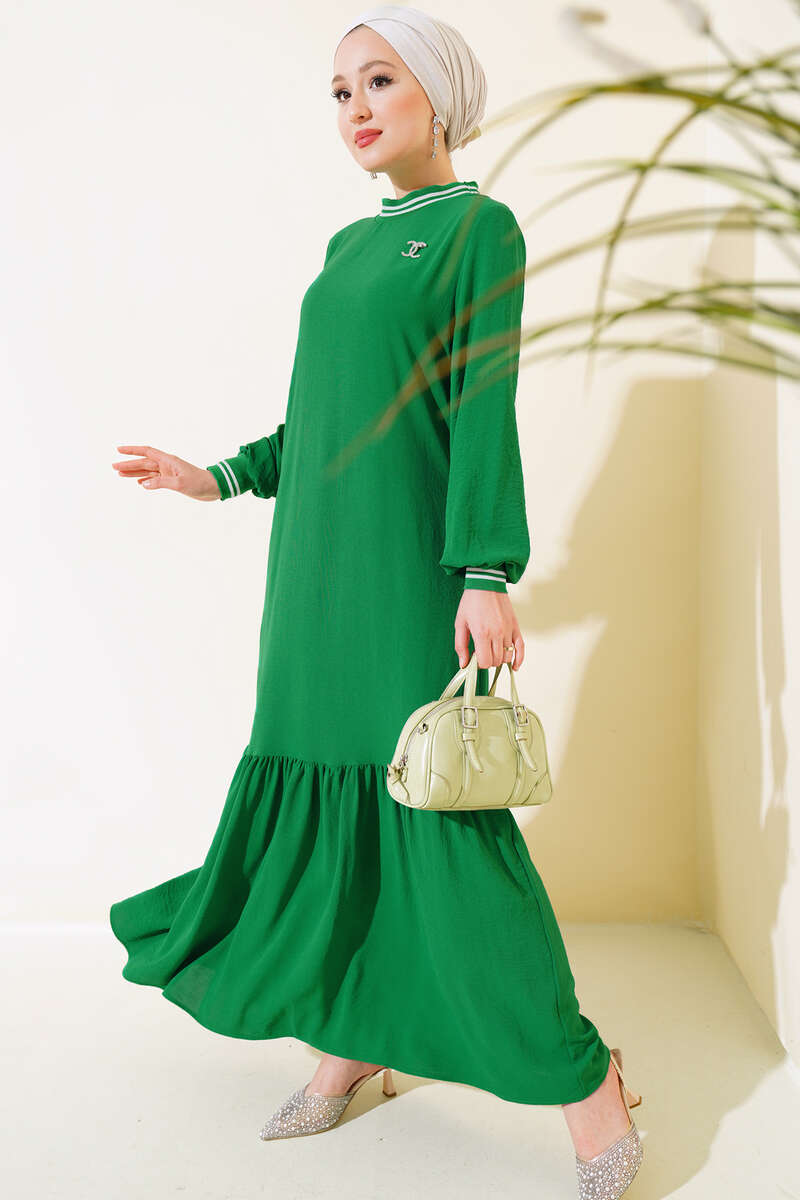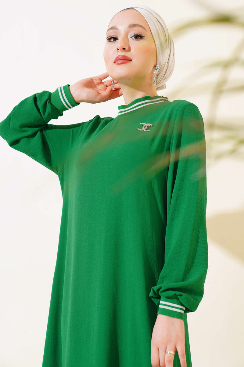 Yeni sezon elbise modelimiz sizlerle beraber. Yakası ve kol bilekleri ribanalıdır. Salaş elbisemizin etek ucu kat modeldir. Geniş elbisemizin kol bilekleri lastiklidir. Renk seçenekleri mevcuttur.