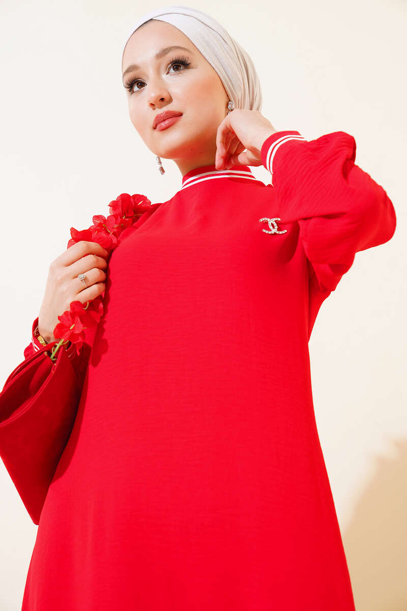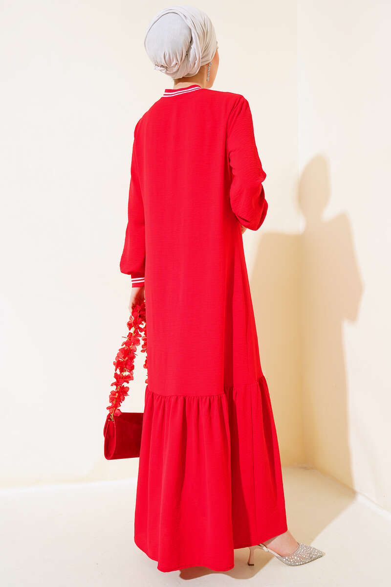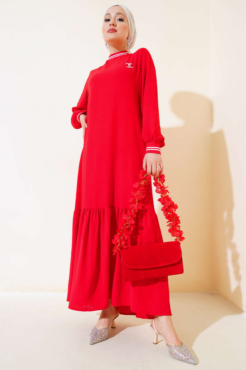 Kol Ve Yakası Ribanalı Elbise Kırmızı