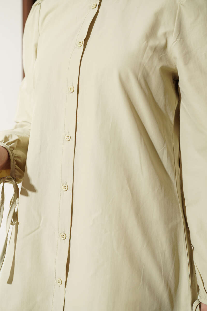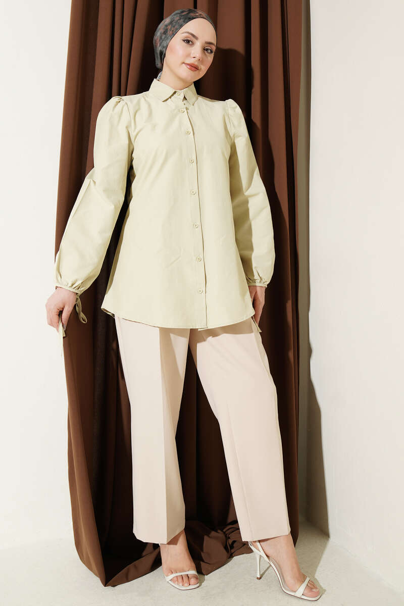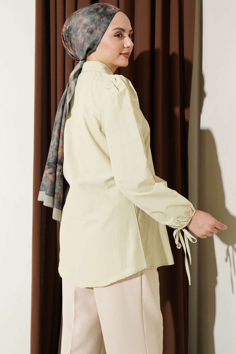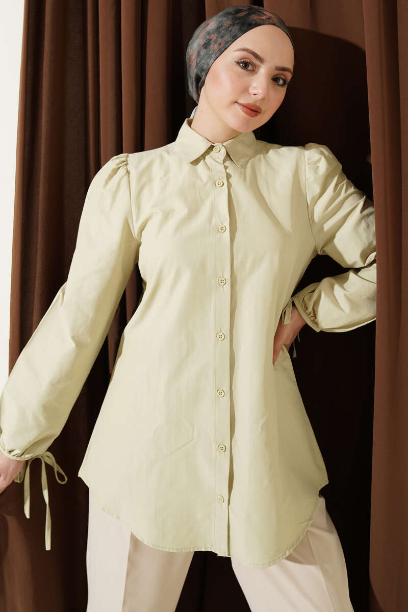 Kolları Bağcık Detaylı Gömlek Yağ Yeşili