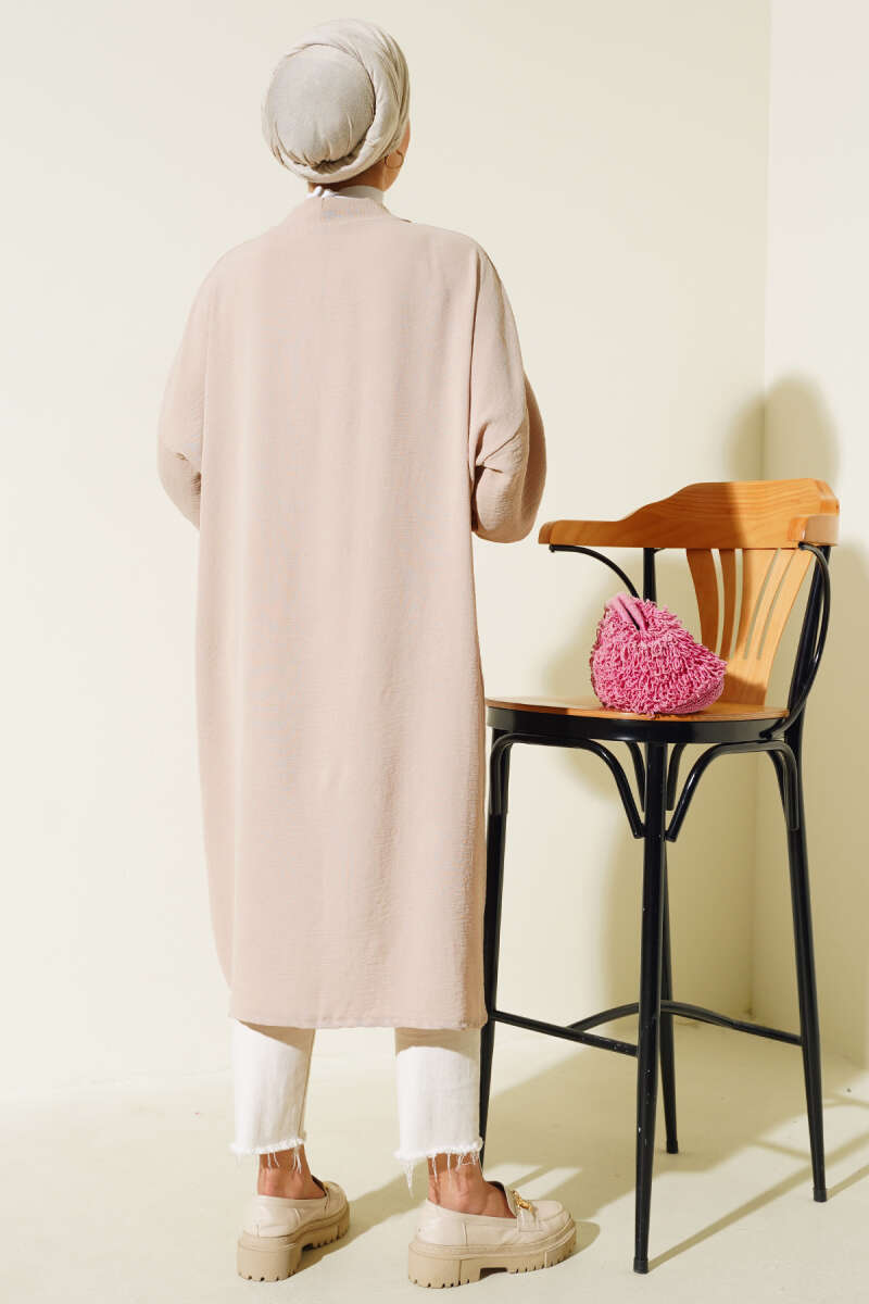 Atkılı Düğmeli Cepli Triko Hırka Vizon