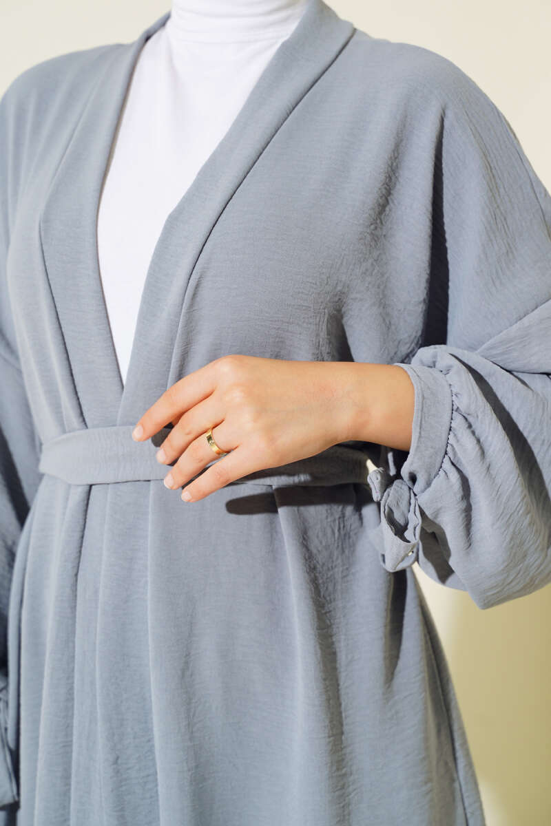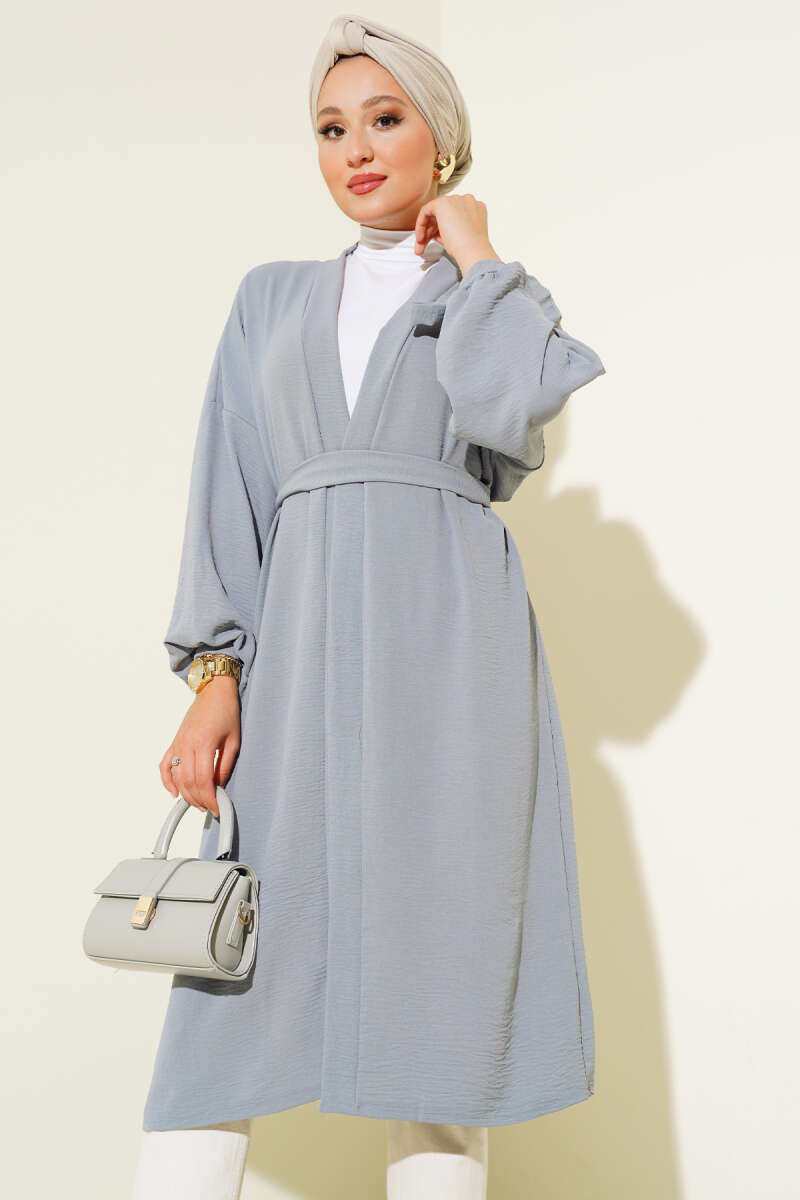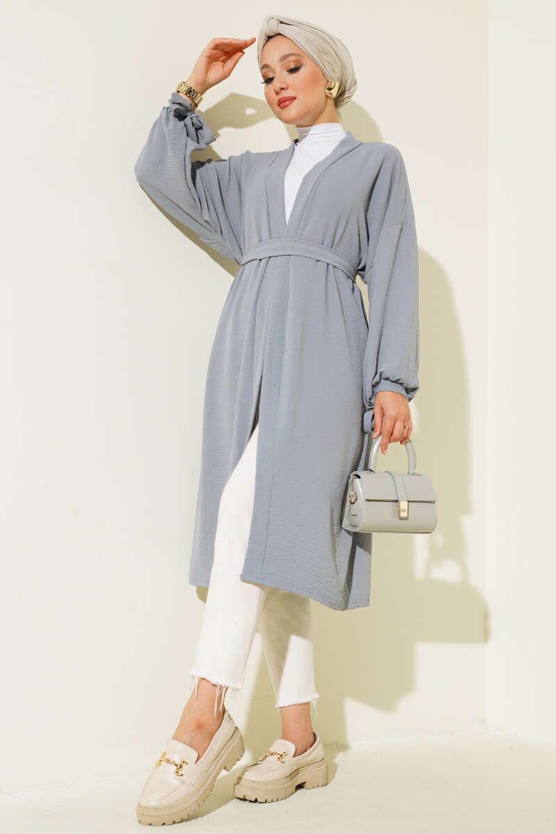 Kolları Bağcıklı Ayrobin Hırka Gri
