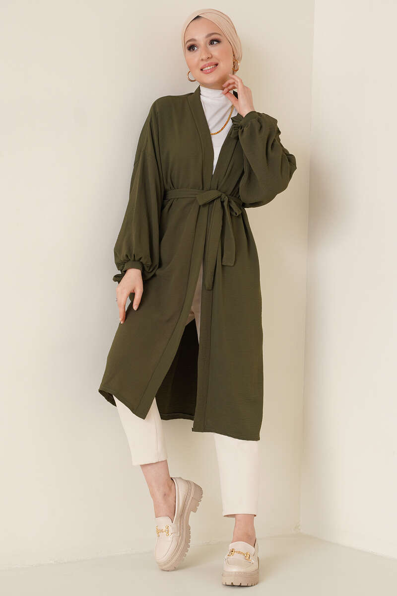 Kolları Bağcıklı Ayrobin Hırka Haki
