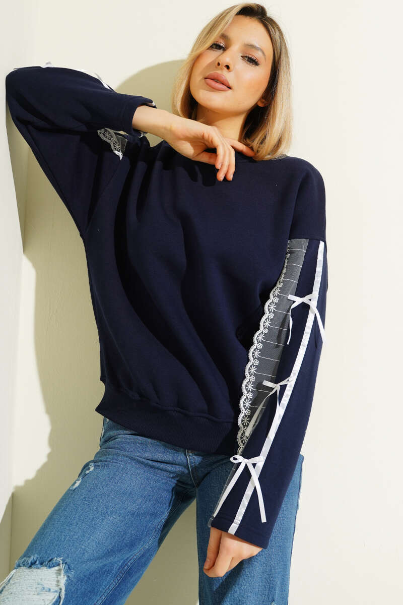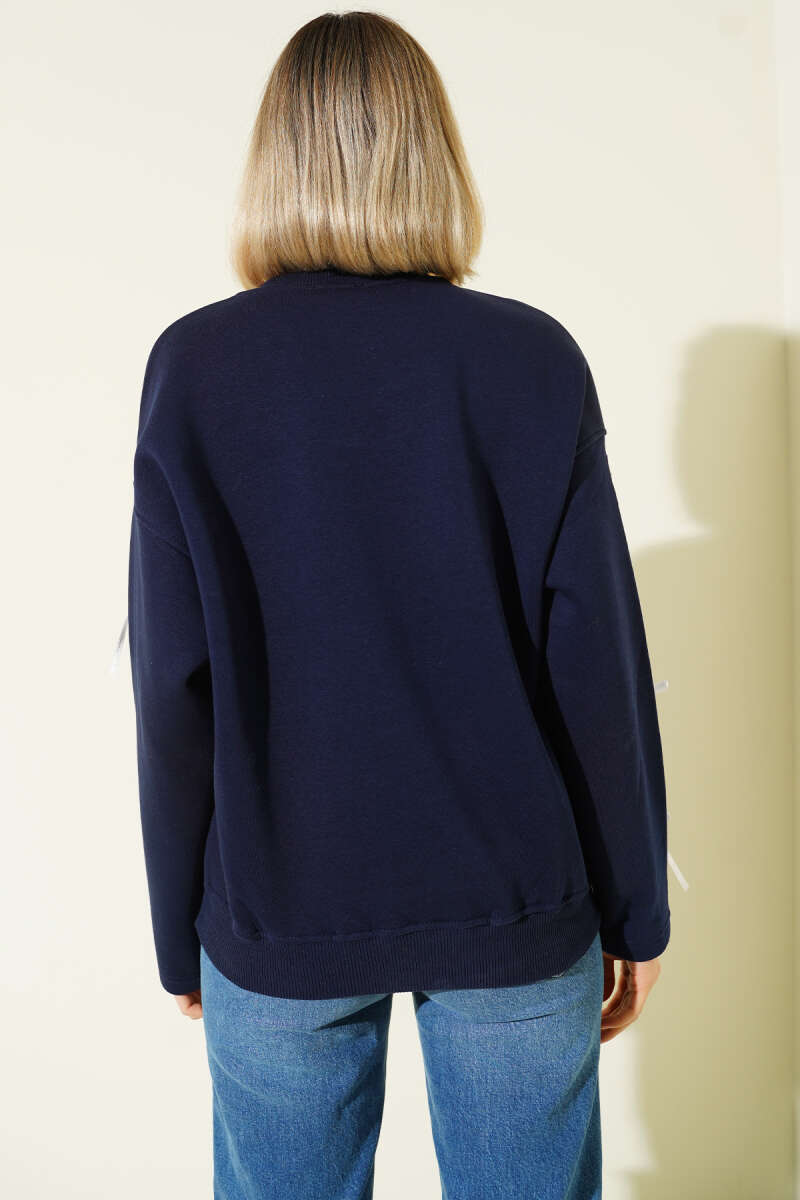 Gömlek Yaka NYC Baskılı Şardonlu Sweatshirt Lacivert