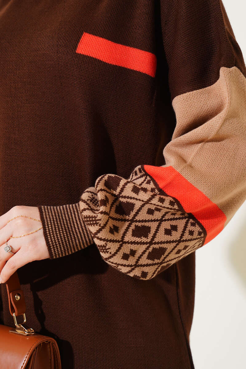Salaş Bisiklet Yaka Simli Triko Tunik Kahve