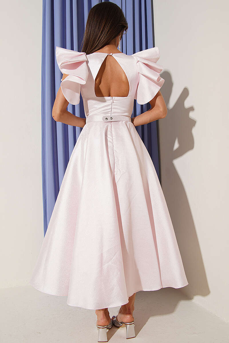 Kolları Fırfır Detaylı Abiye Elbise Pudra