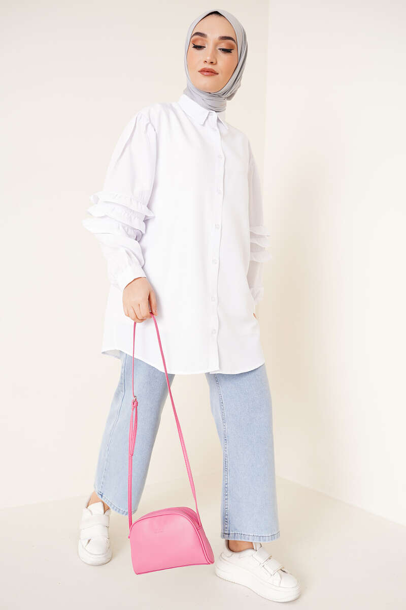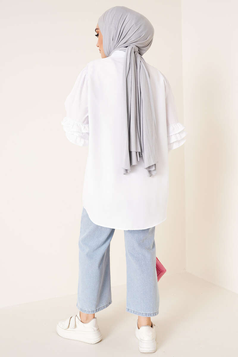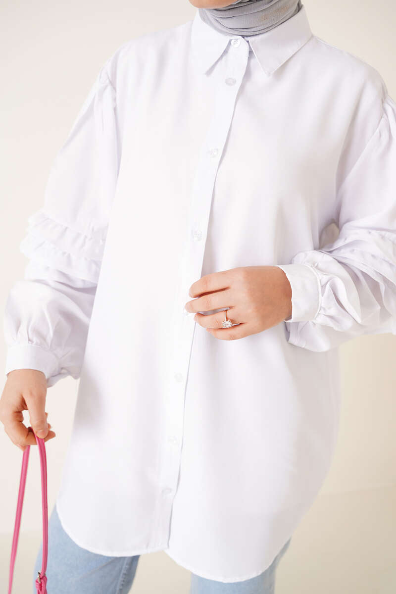 Kolları Fırfır Detaylı Gömlek Beyaz