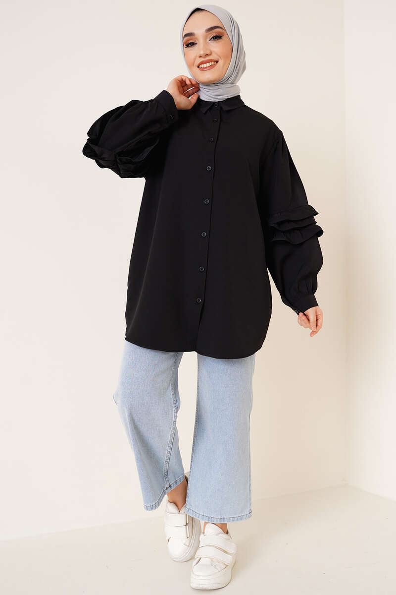 Yeni sezon gömleğimiz harika tasarımıyla sizler için geldi. Gömleğimizin kolları fırfır detaylıdır. Kolları balon modeldir. Önü ve bilekleri düğmelidir. Her kıyafetinizle rahatlıkla kombin yapabilirsiniz. Farklı renk seçenekleri mevcuttur.
