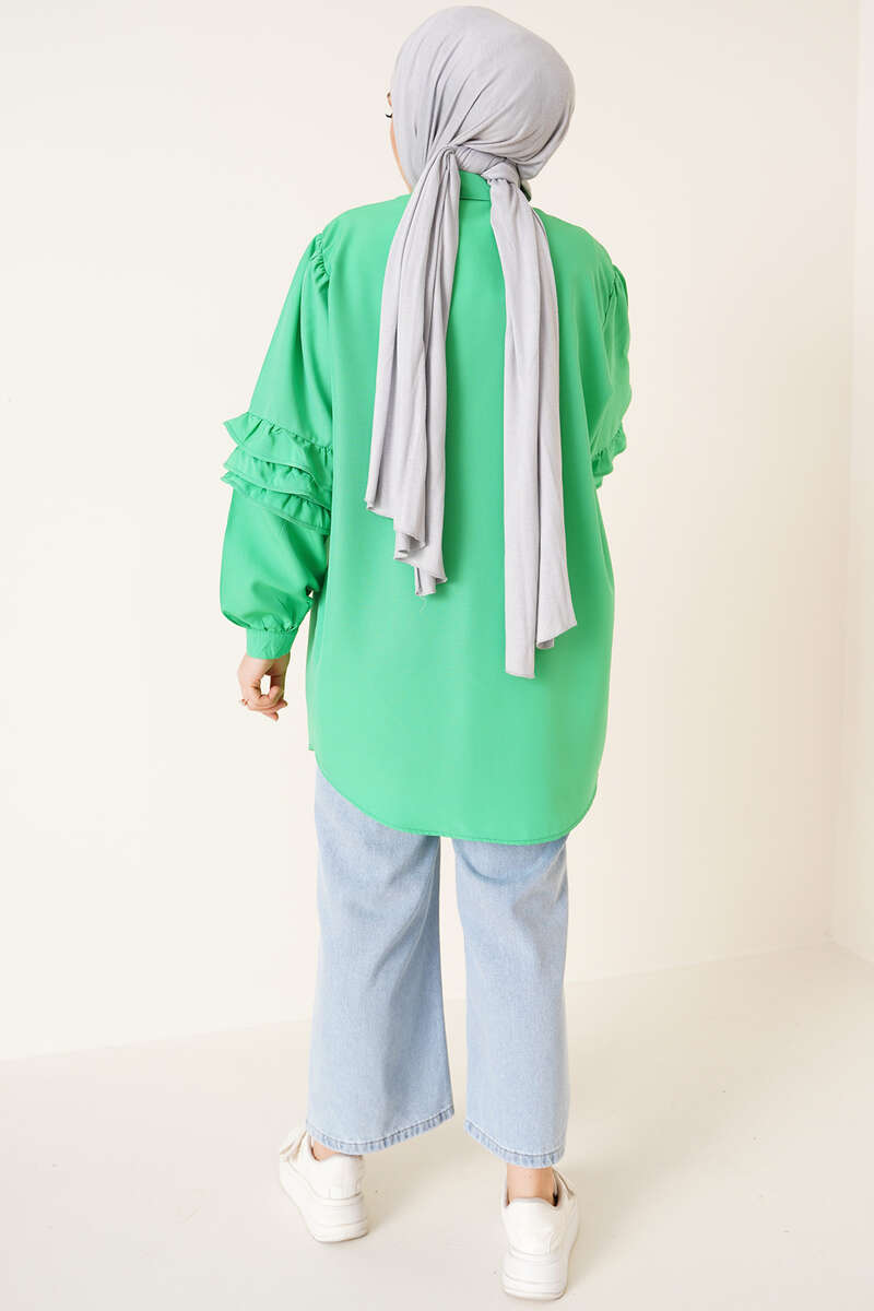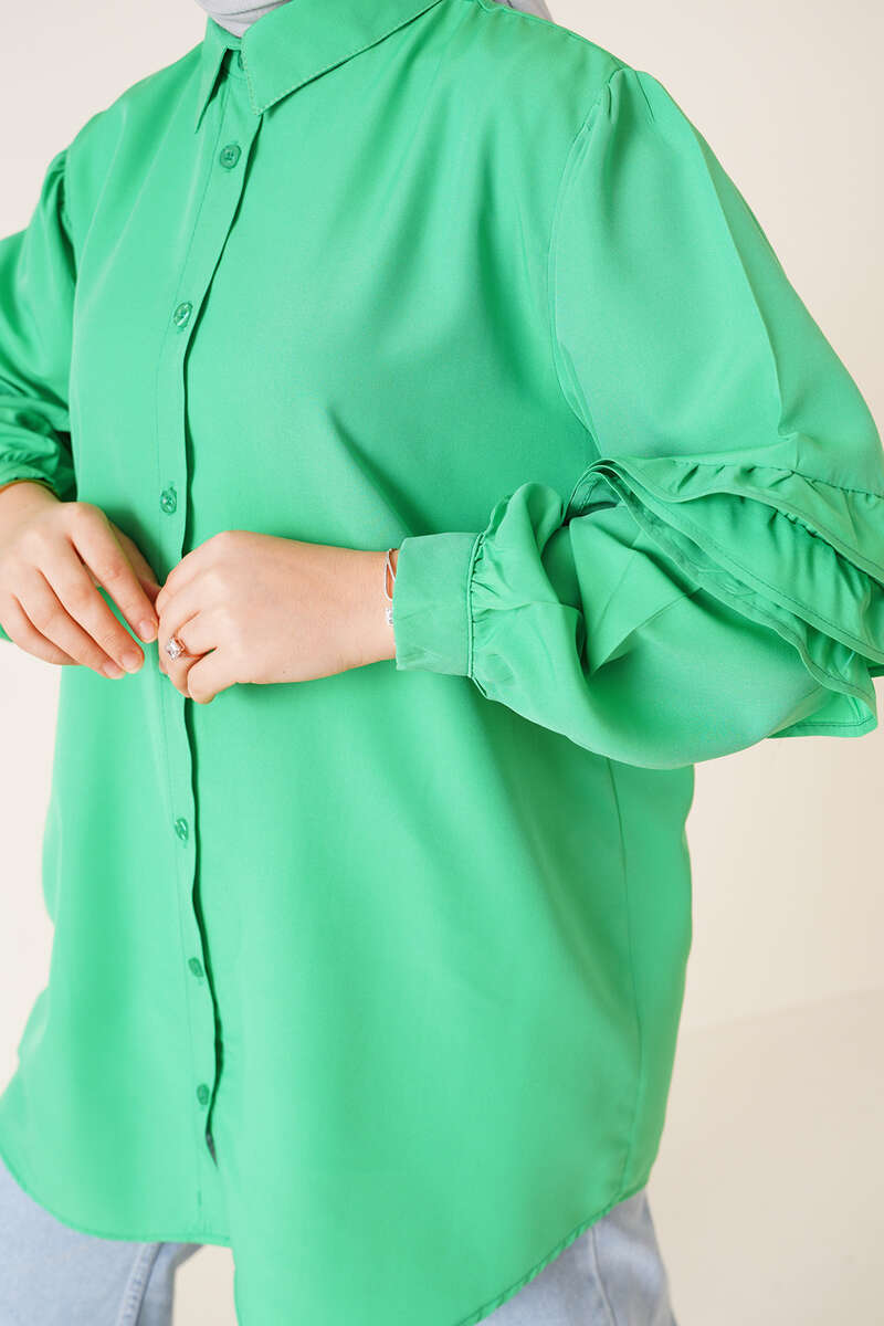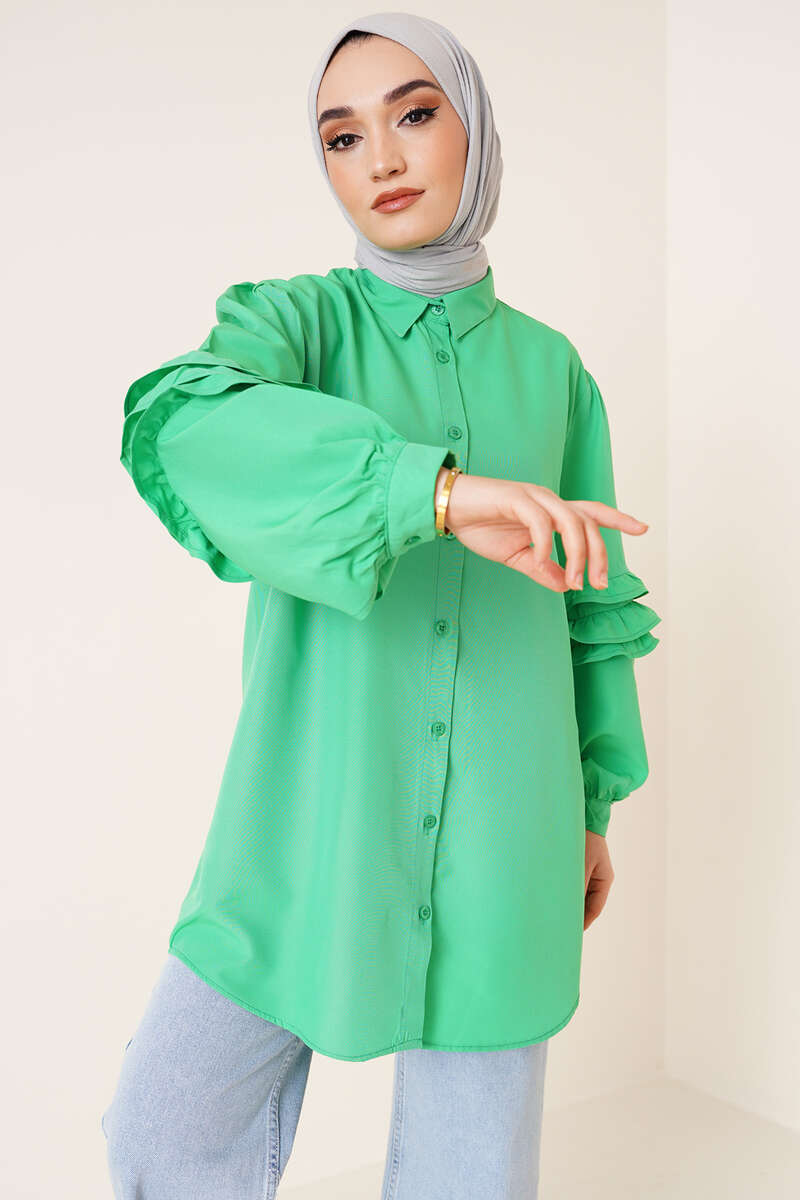 Yeni sezon gömleğimiz harika tasarımıyla sizler için geldi. Gömleğimizin kolları fırfır detaylıdır. Kolları balon modeldir. Önü ve bilekleri düğmelidir. Her kıyafetinizle rahatlıkla kombin yapabilirsiniz. Farklı renk seçenekleri mevcuttur.