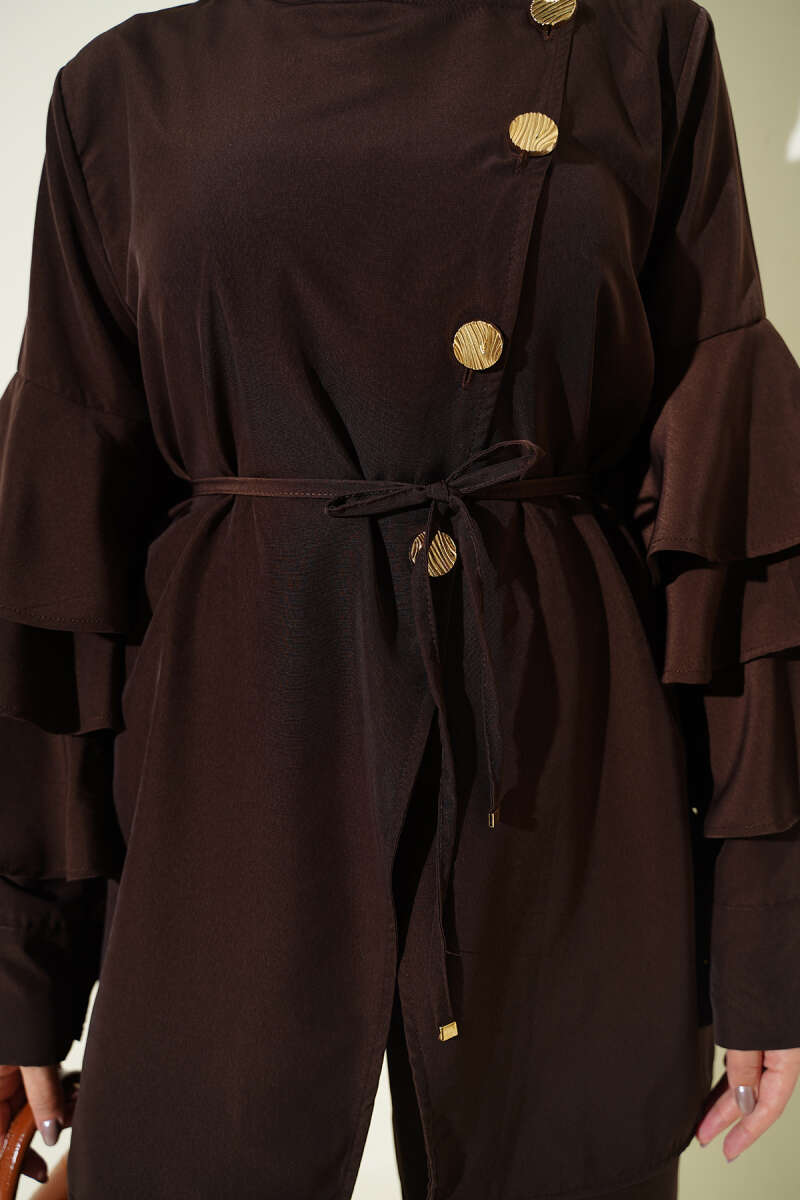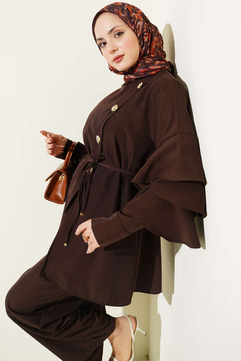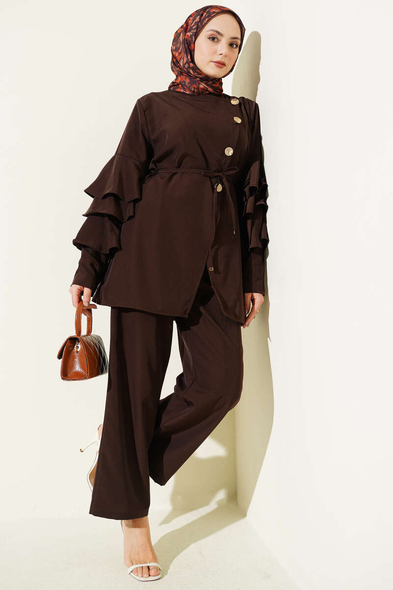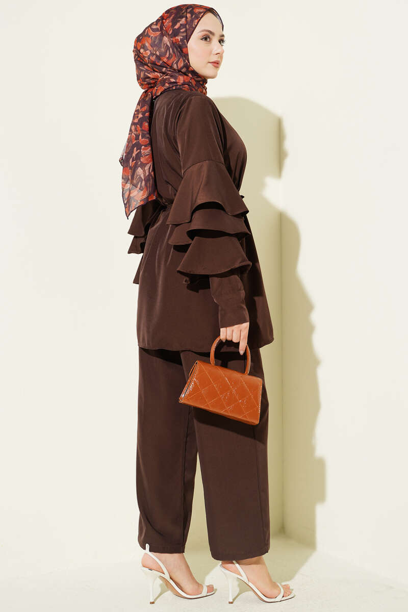 Pul Payetli Etekli Abiye İkili Takım Kahve