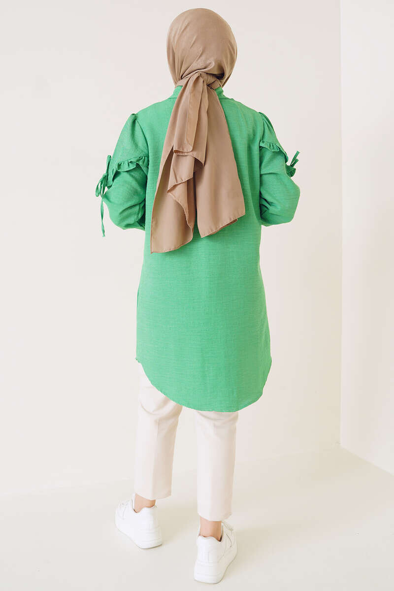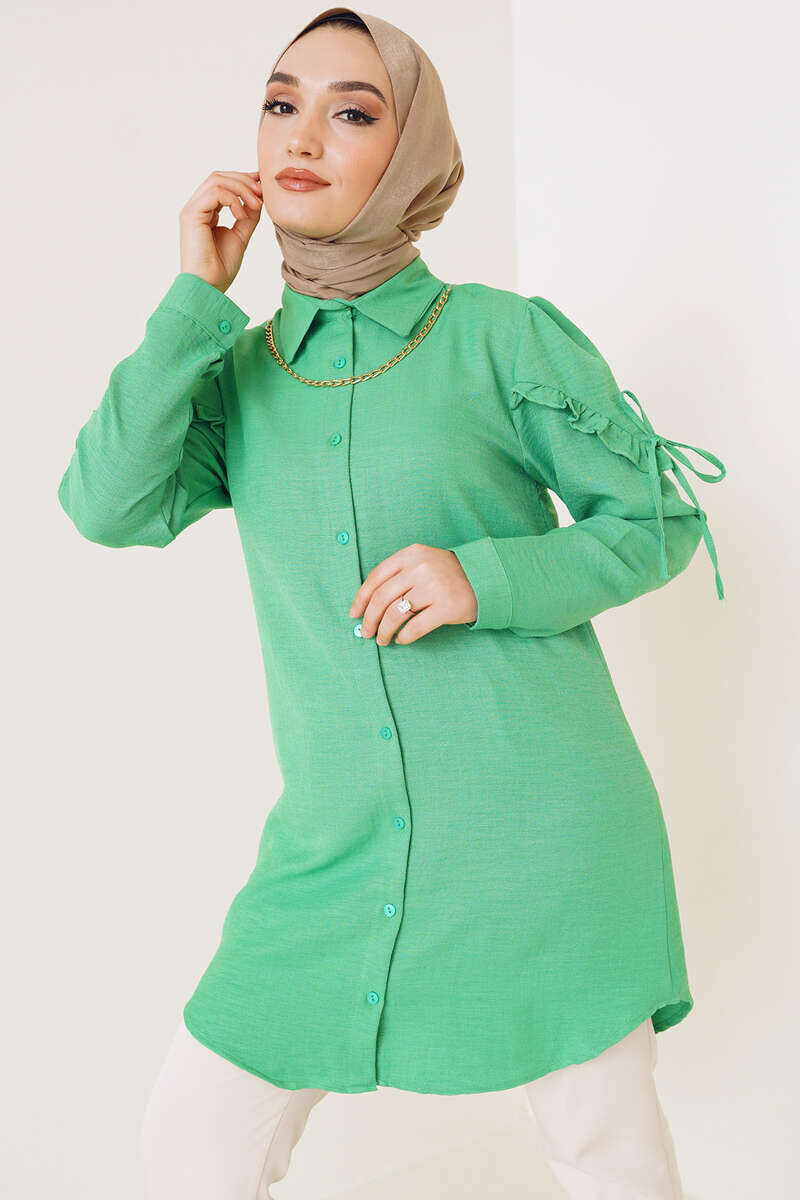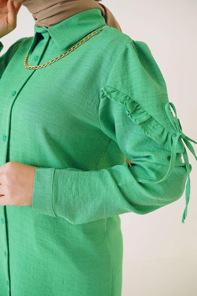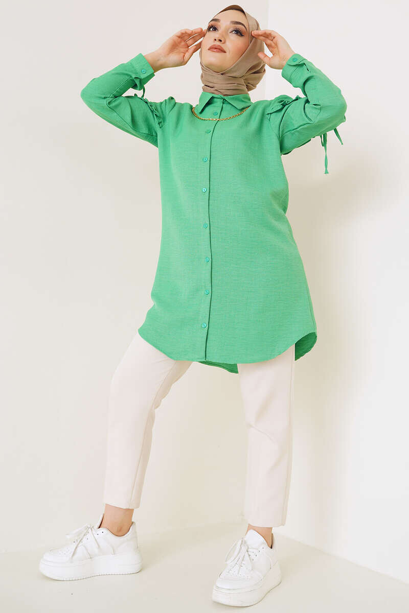 Yaka Bağlamalı Saten Gömlek Yeşil
