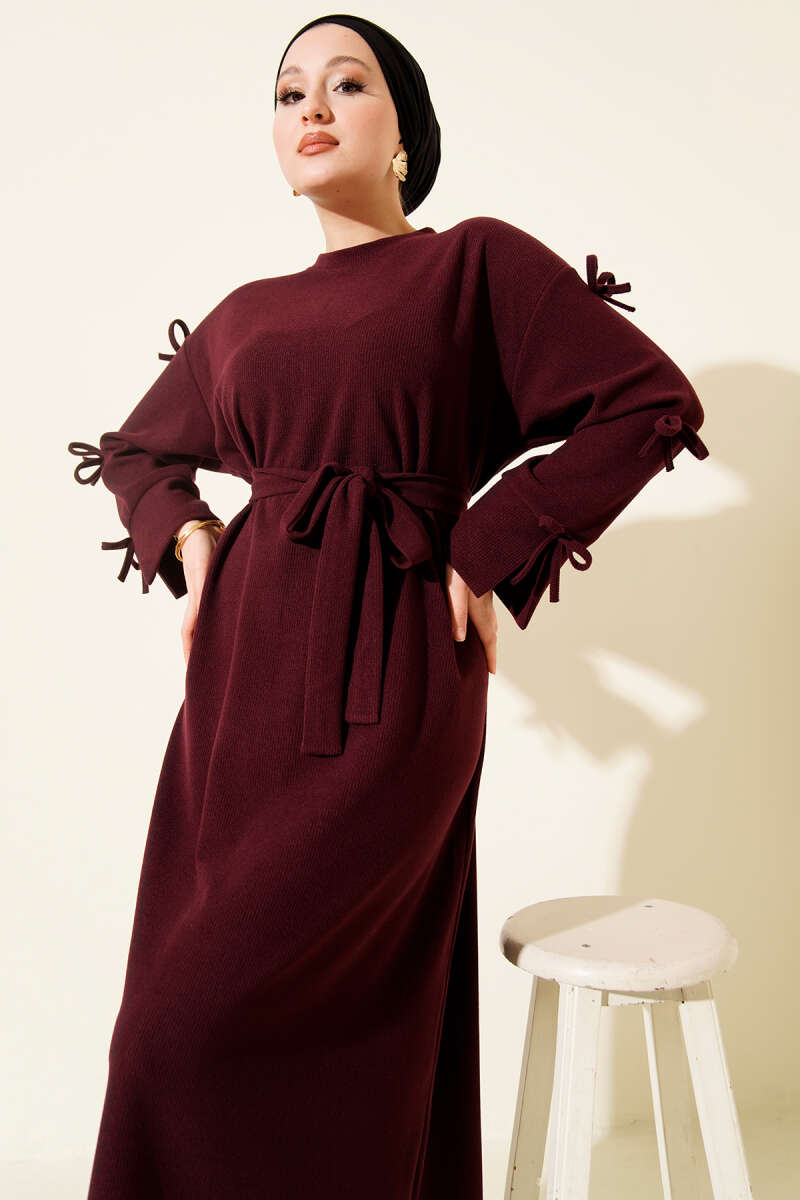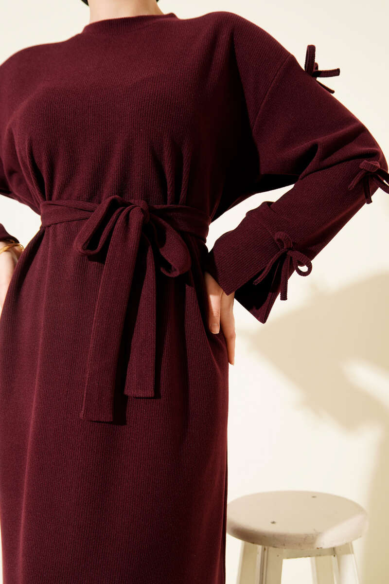 Loyşa Geniş Kollu İp Kuşaklı Tunik Bordo