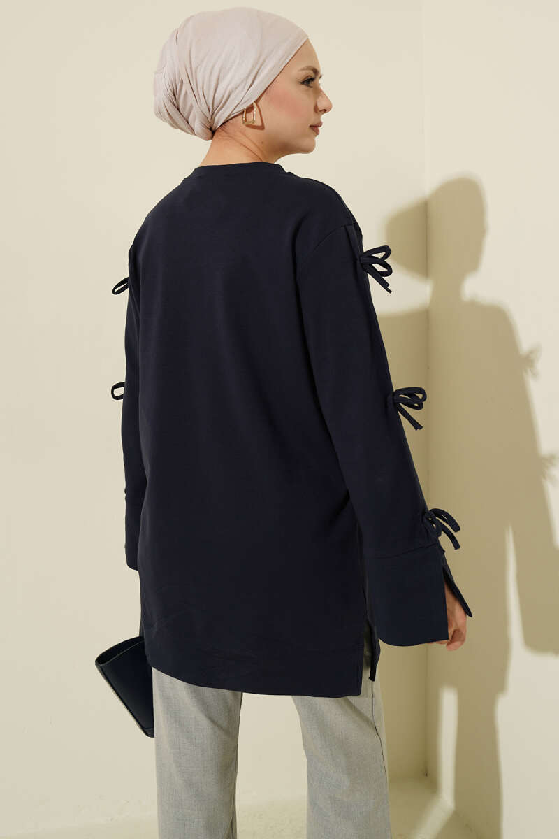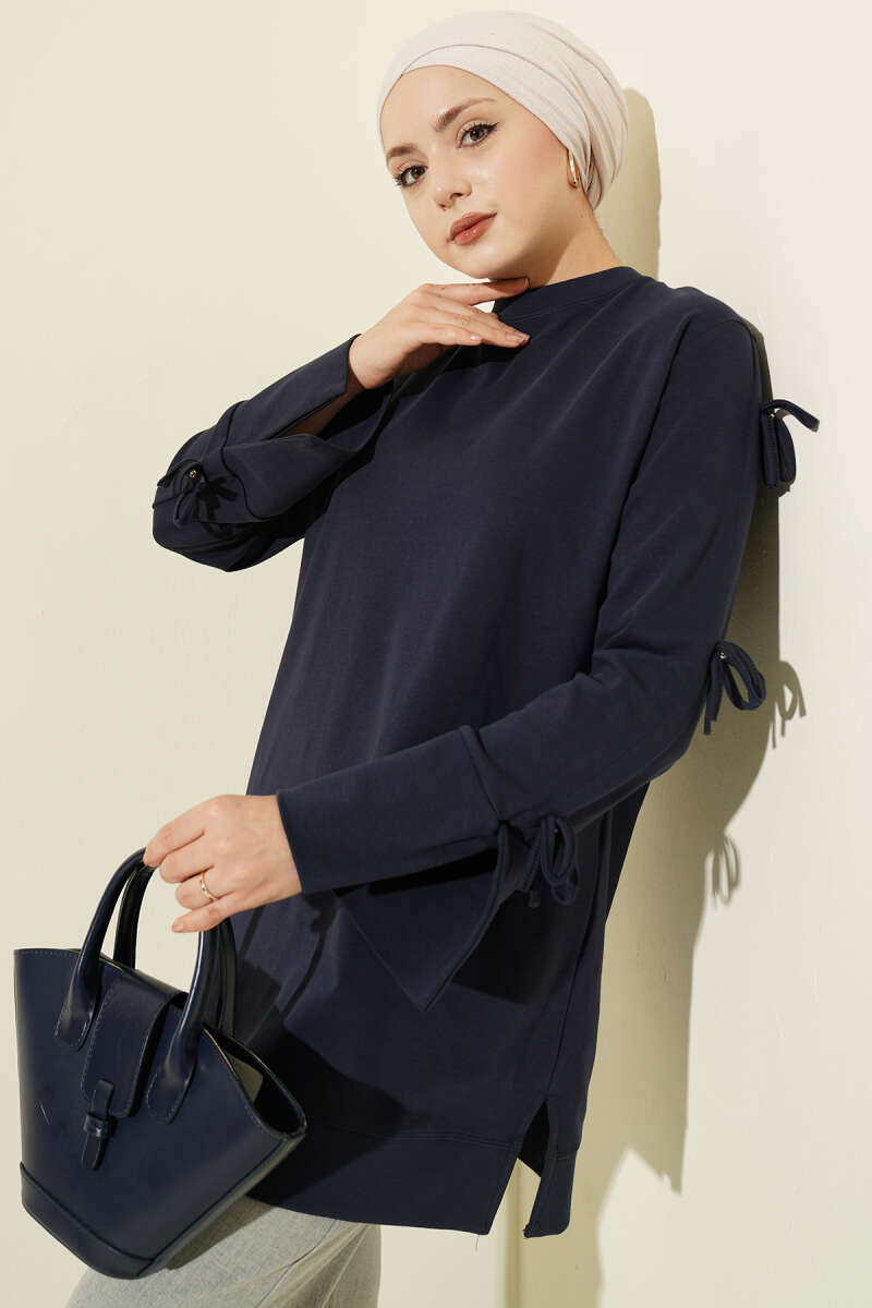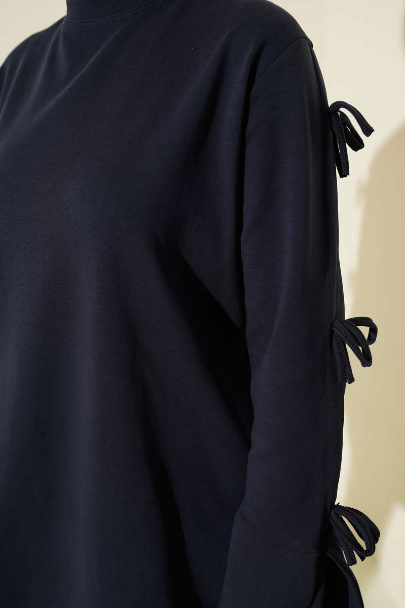 Kolları Fiyonk Detaylı Tunik Lacivert