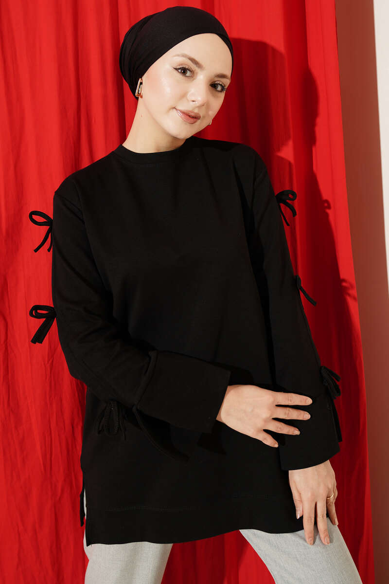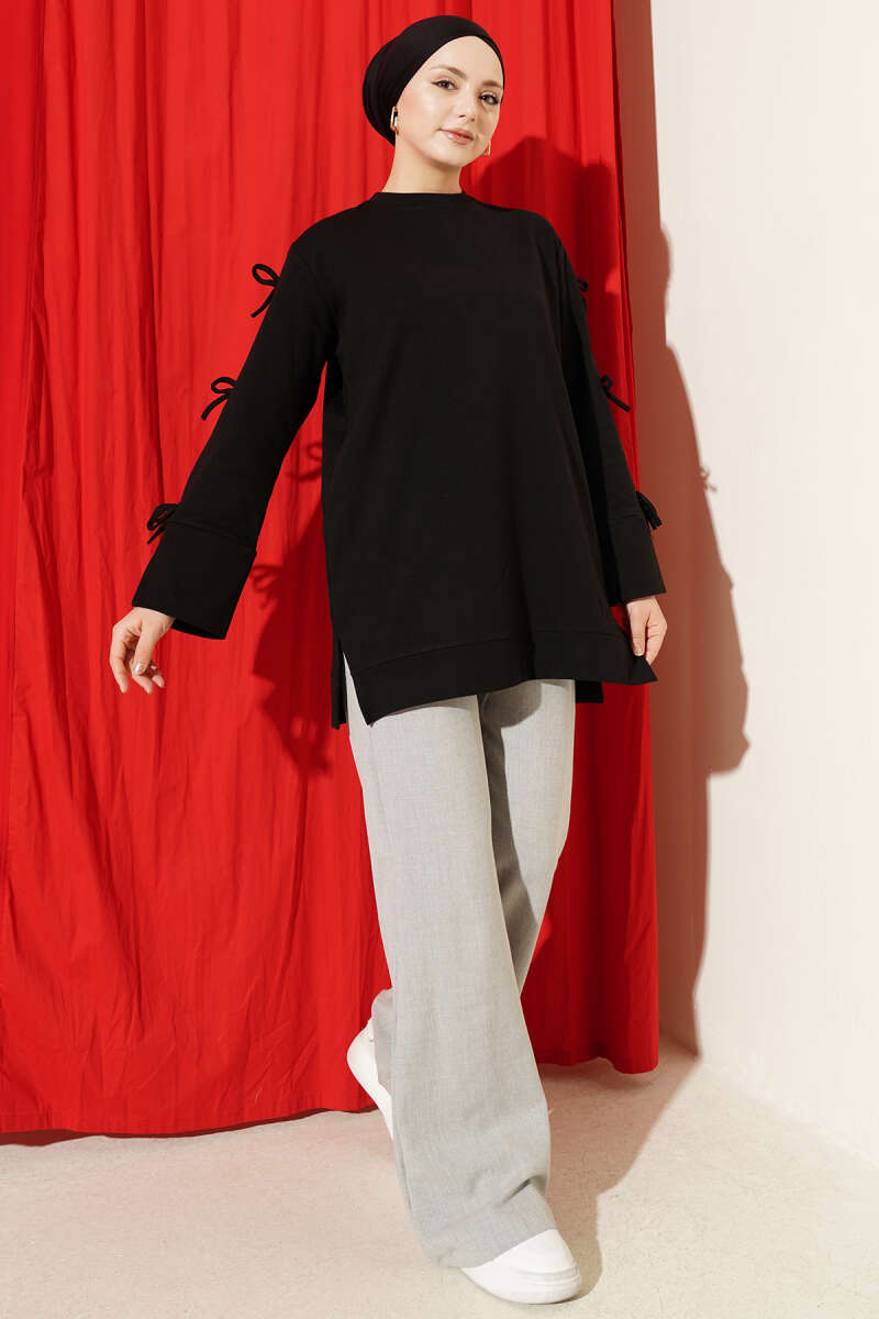 Gömlek Yaka Ekose Garnili Tunik Siyah