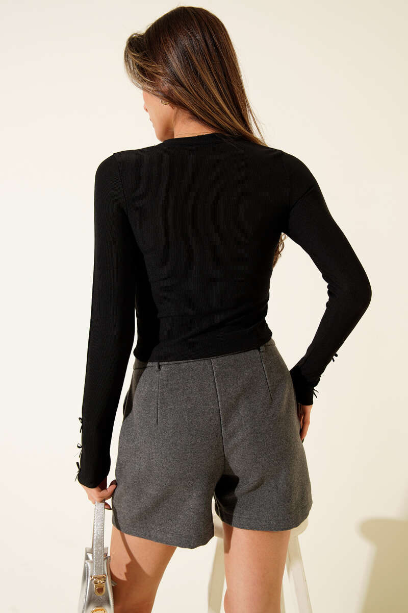 Kapşonlu Fermuarlı Kısa Hırka Siyah