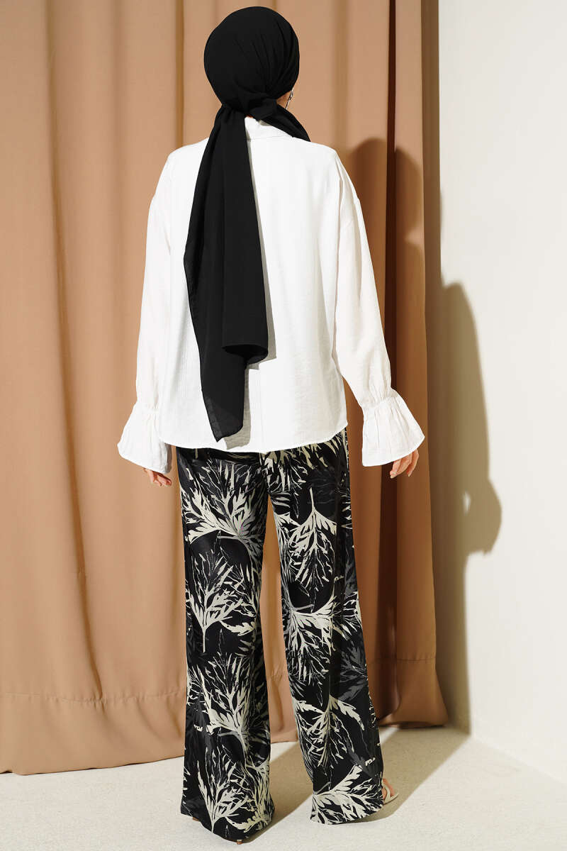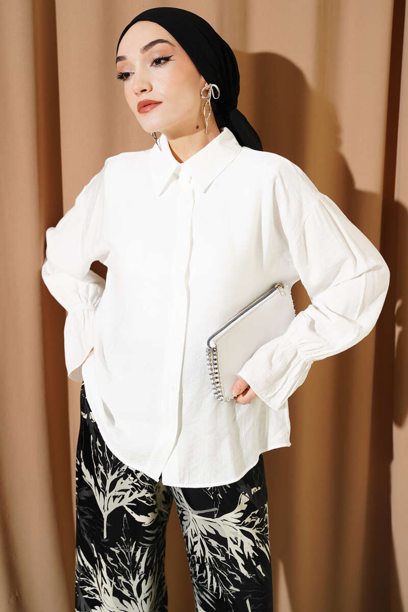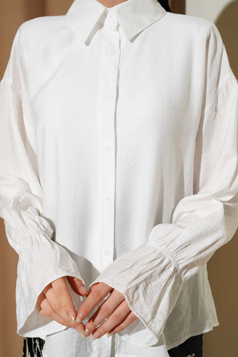 Kolları Lastikli Krinkıl Gömlek Ekru