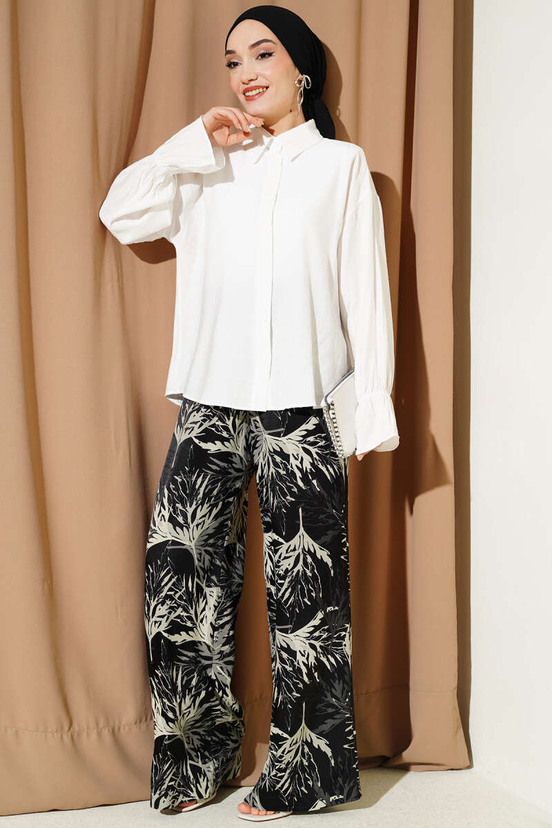 Kolları Lastikli Krinkıl Gömlek Siyah