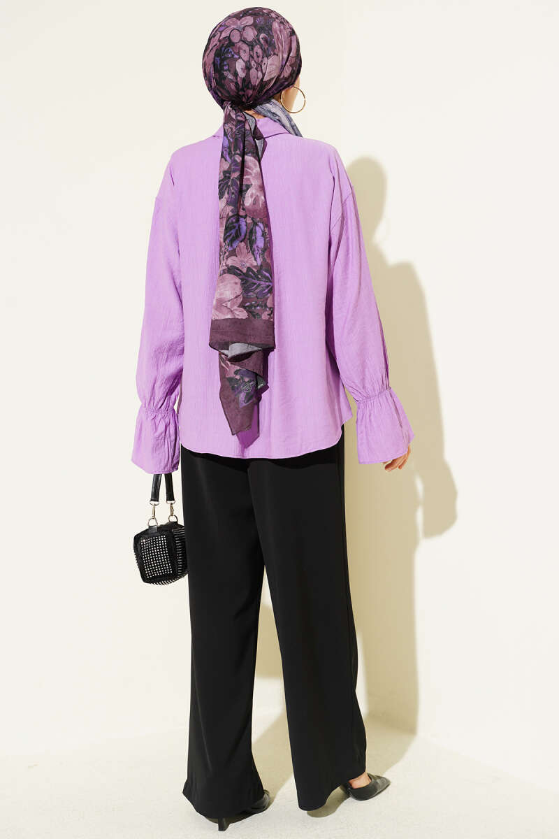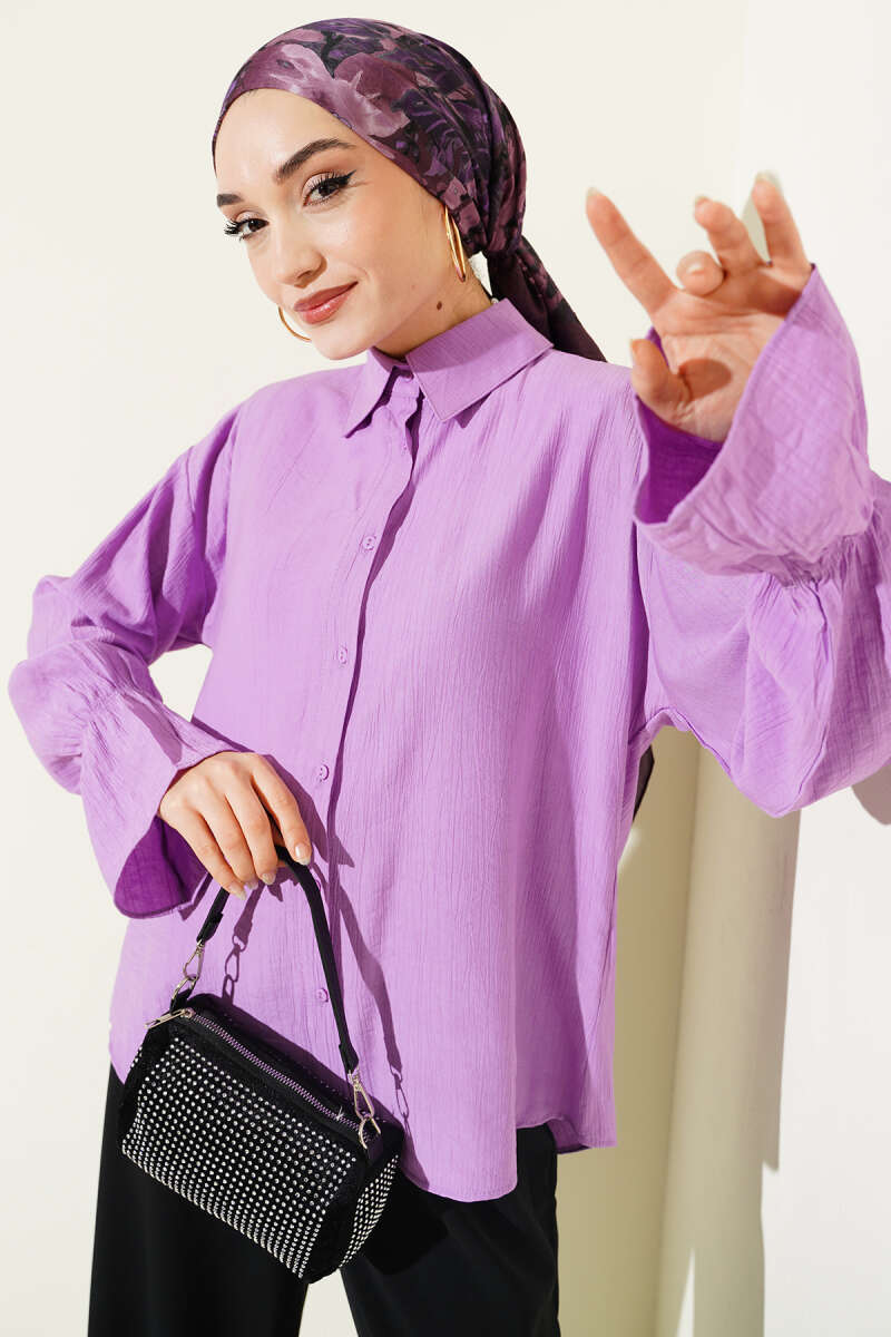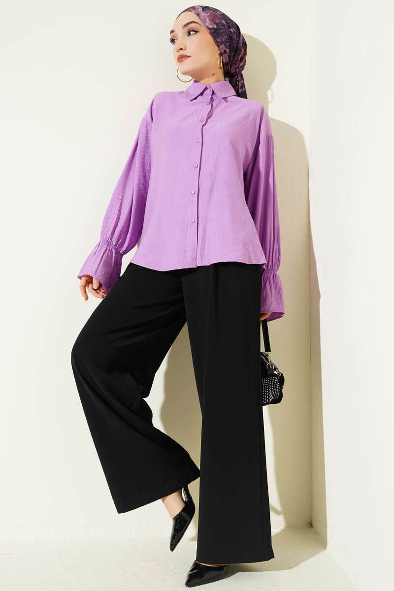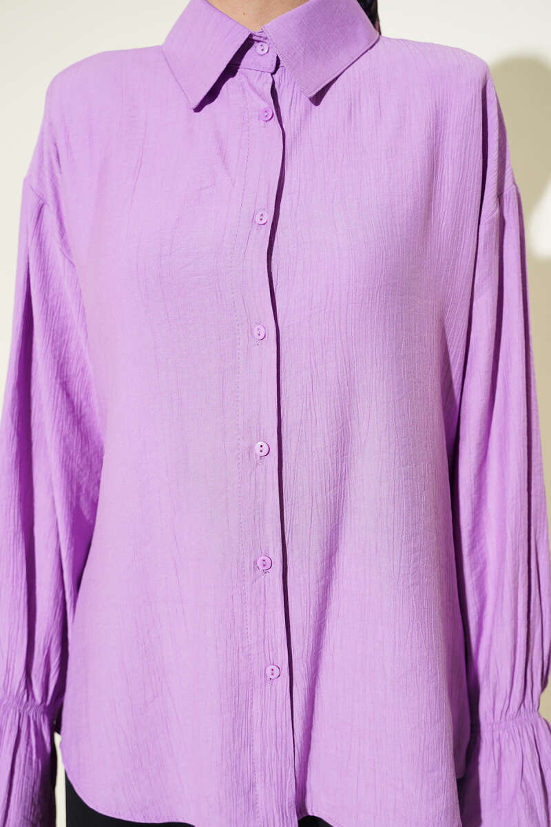 Kolları Lastikli Krinkıl Gömlek Lila