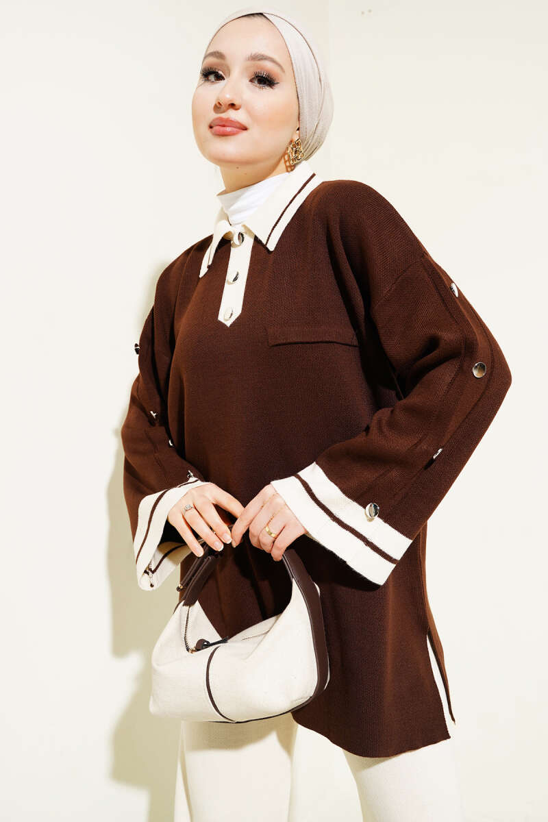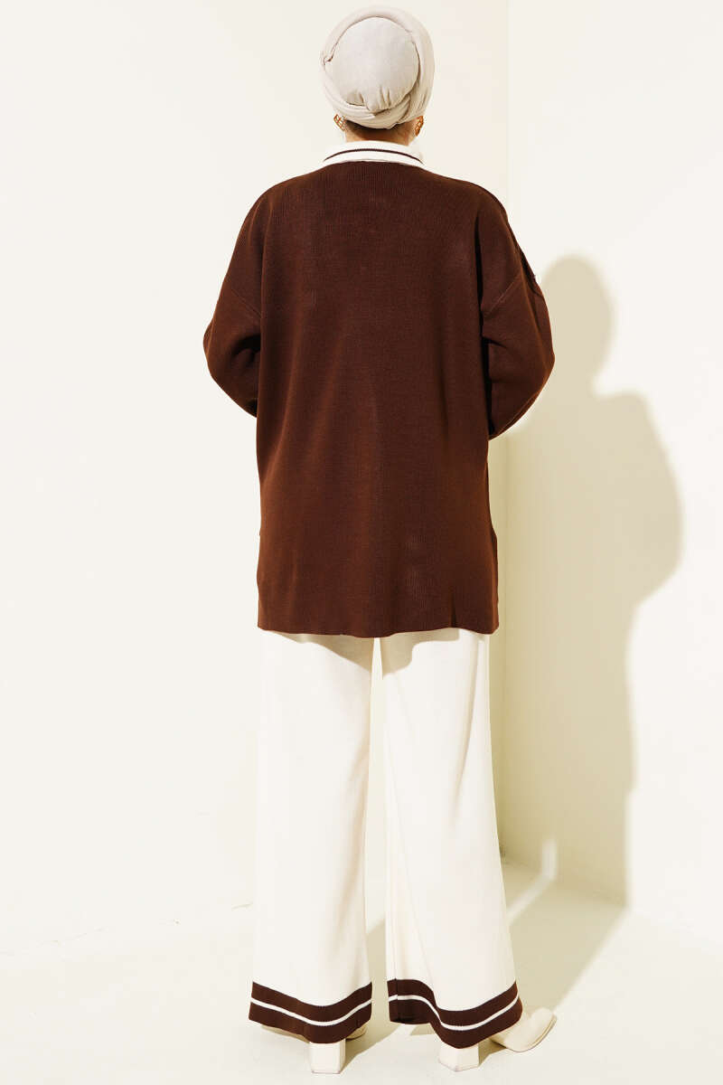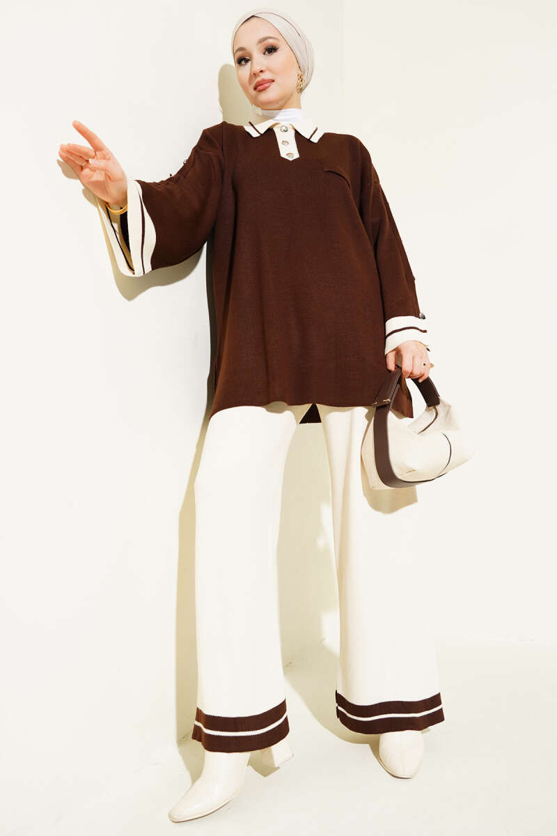 Yaka Kürklü Fermuarlı Triko İkili Takım Taba