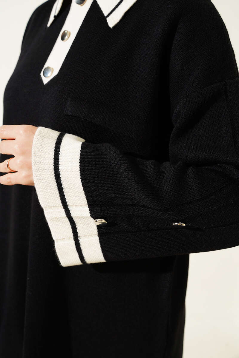 Gömlek Yaka Çizgili Triko Tunik Kırmızı