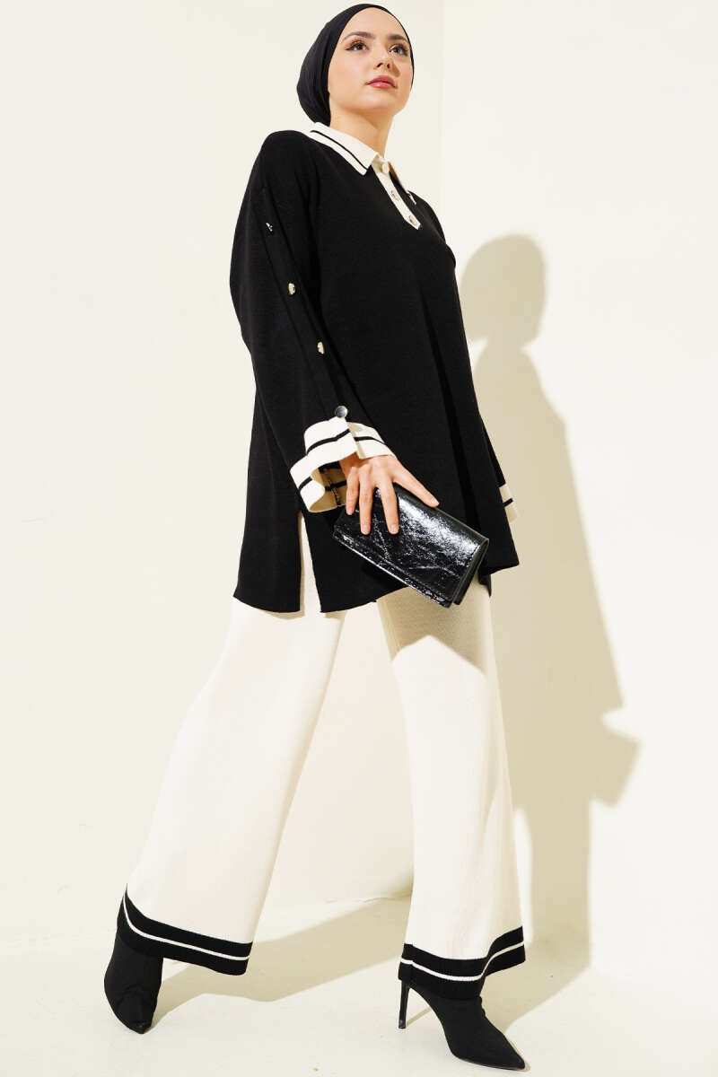 Bel Tünelli Biye Detaylı İkili Takım Siyah
