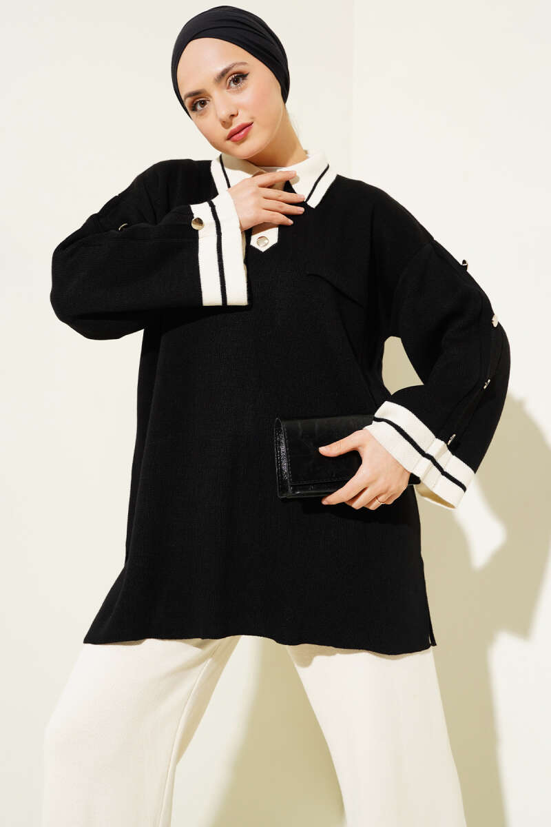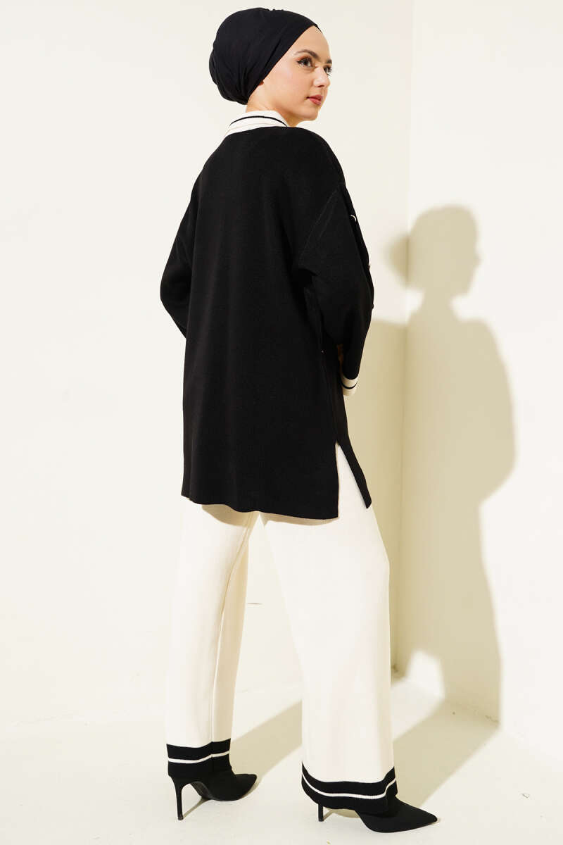 Yaka Kürklü Fermuarlı Triko İkili Takım Siyah