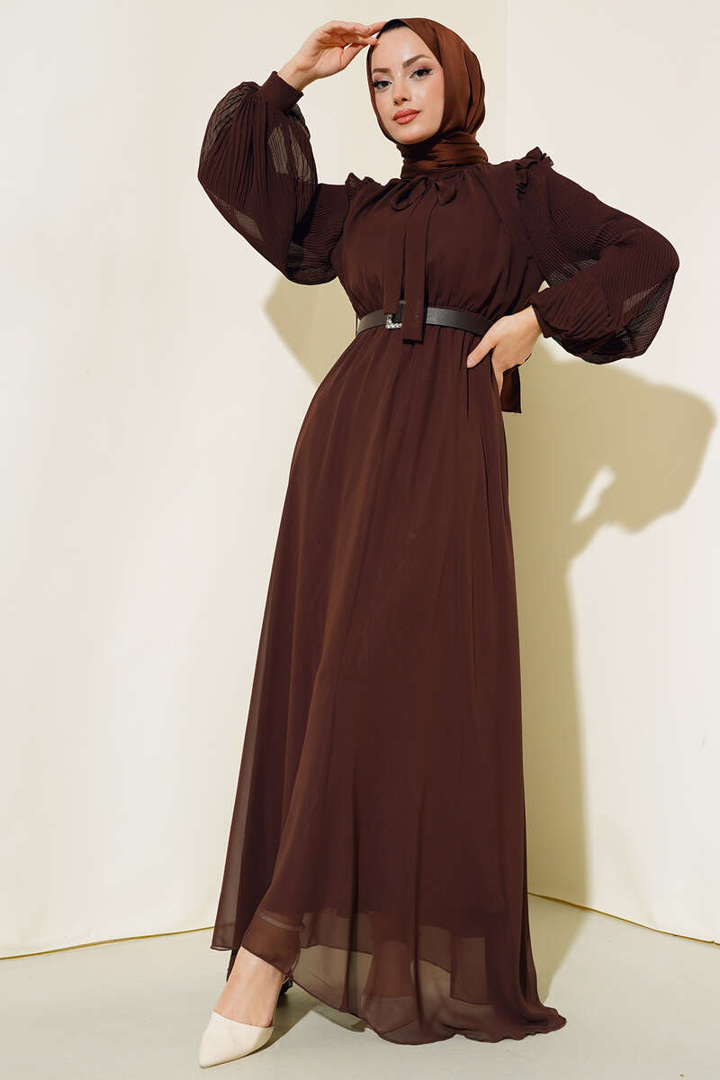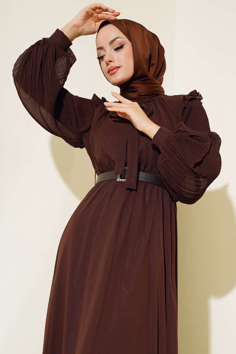 Yeni sezon elbisemiz şık tasarımıyla sizlerle birlikte. Elbisemizin omuzları fırfırlıdır. Kolları piliselidir. Beli lastiklidir. Boynunda ince fular vardır. Belinde kemer bulunmaktadır. İki adet kemer köprüsü vardır. Astarlıdır. Her ortamda rahatlıkla giyebilirsiniz. Farklı renk seçenekleri mevcuttur.