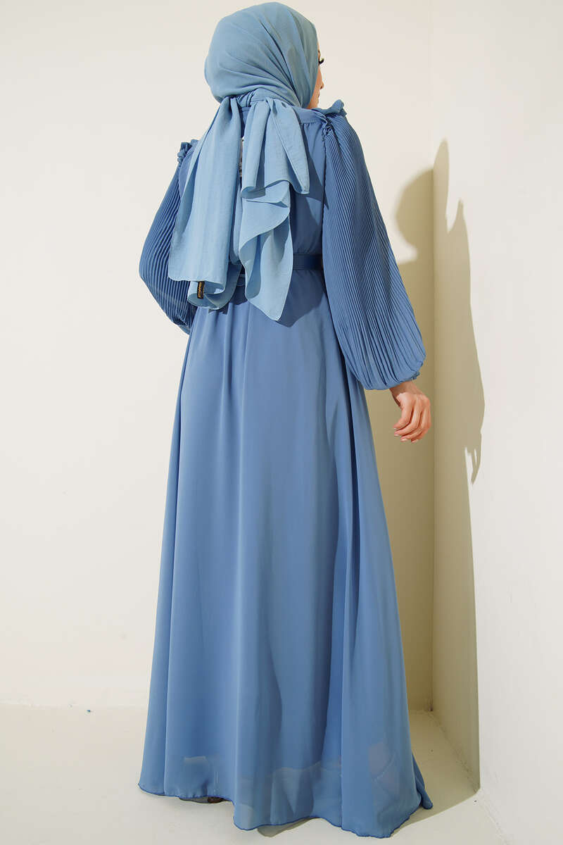 Yeni sezon elbisemiz şık tasarımıyla sizlerle birlikte. Elbisemizin omuzları fırfırlıdır. Kolları piliselidir. Beli lastiklidir. Boynunda ince fular vardır. Belinde kemer bulunmaktadır. İki adet kemer köprüsü vardır. Astarlıdır. Her ortamda rahatlıkla giyebilirsiniz. Farklı renk seçenekleri mevcuttur.