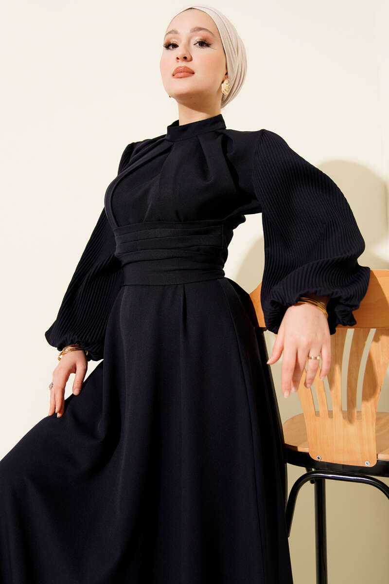 Pötikareli Yanları Büzgü Detay Siyah Tunik