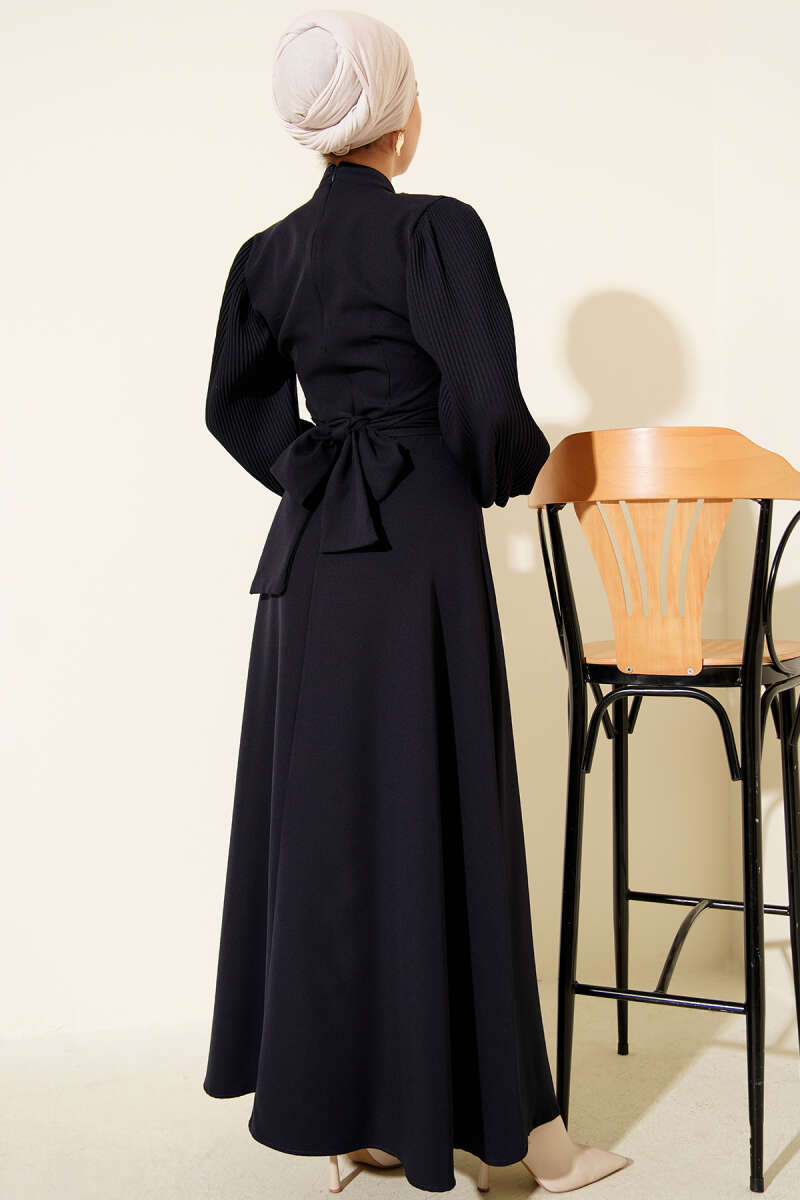 Yakası Yarım Fermuarlı Triko Elbise Lacivert