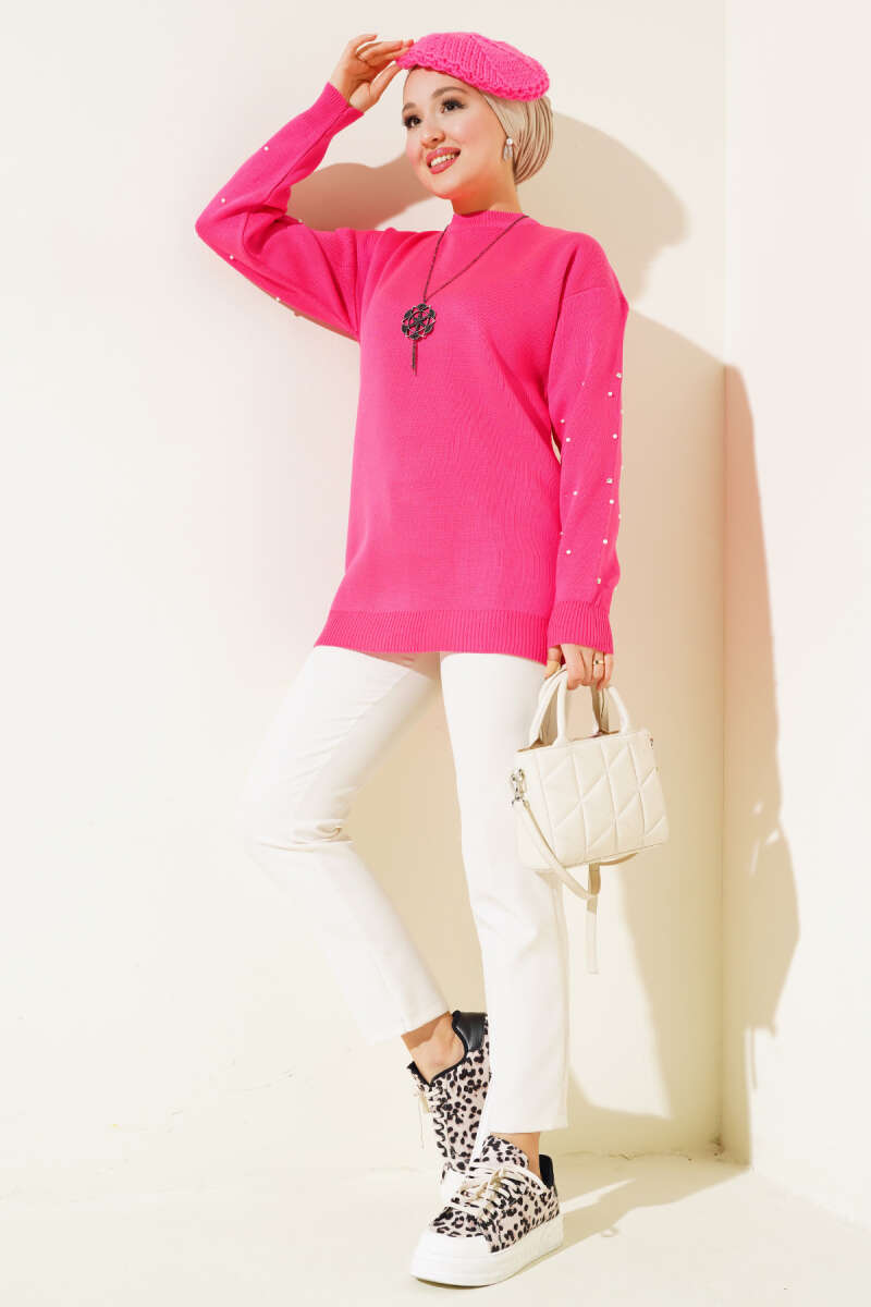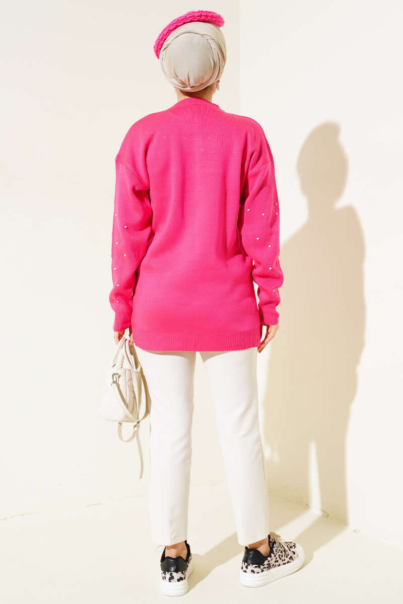 Kolları Taş Detaylı Triko Tunik Fuşya