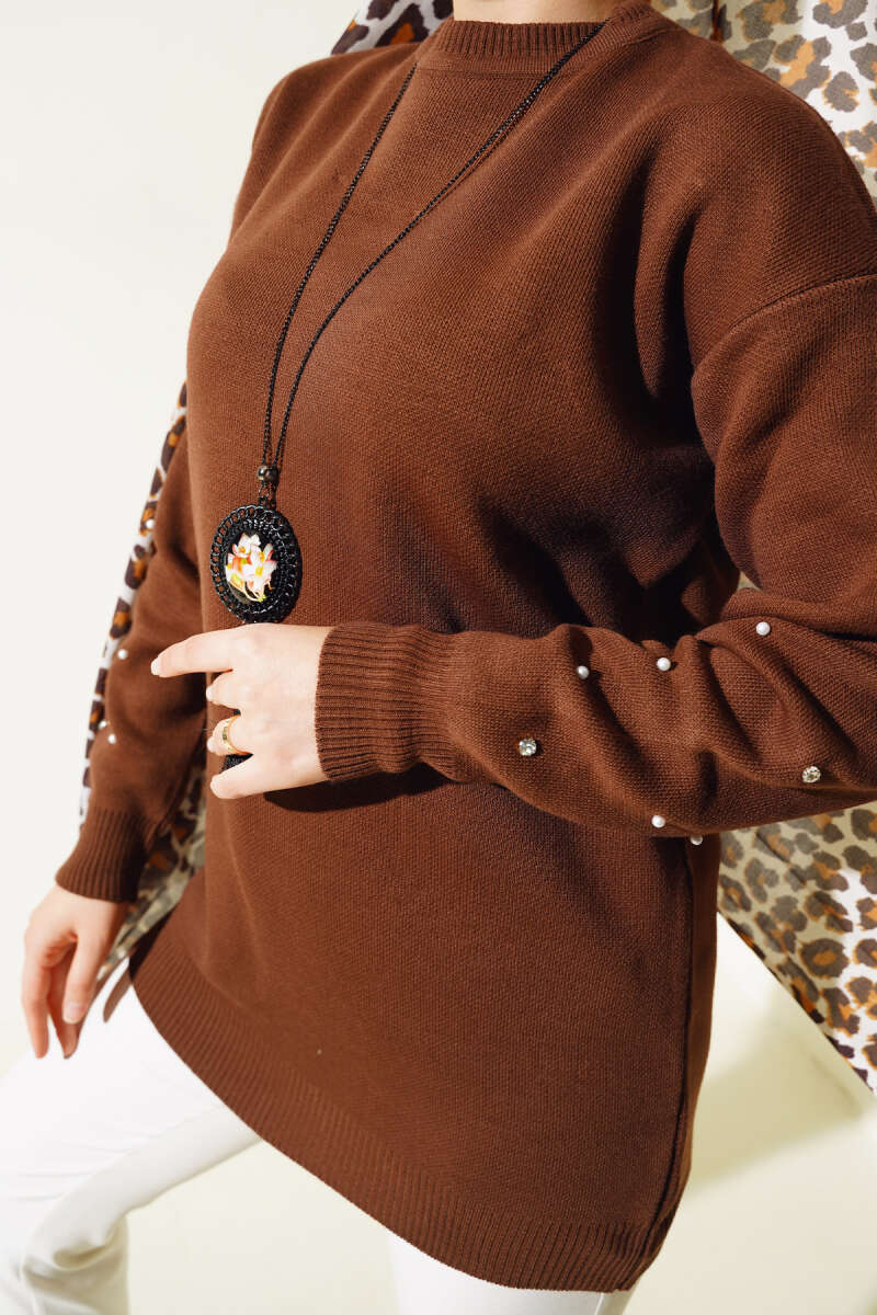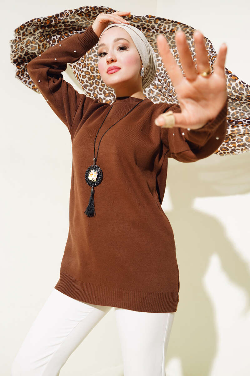 Yatay Çizgi Detaylı Basic Triko Tunik Vizon