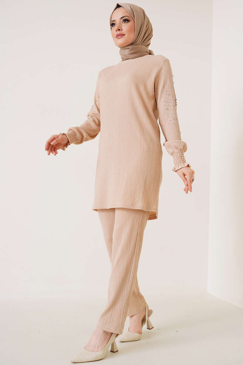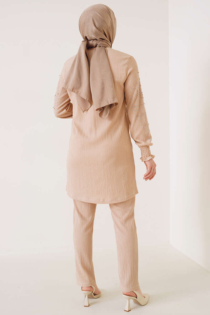 Kolları Taşlı Bürümcük İkili Takım Bej