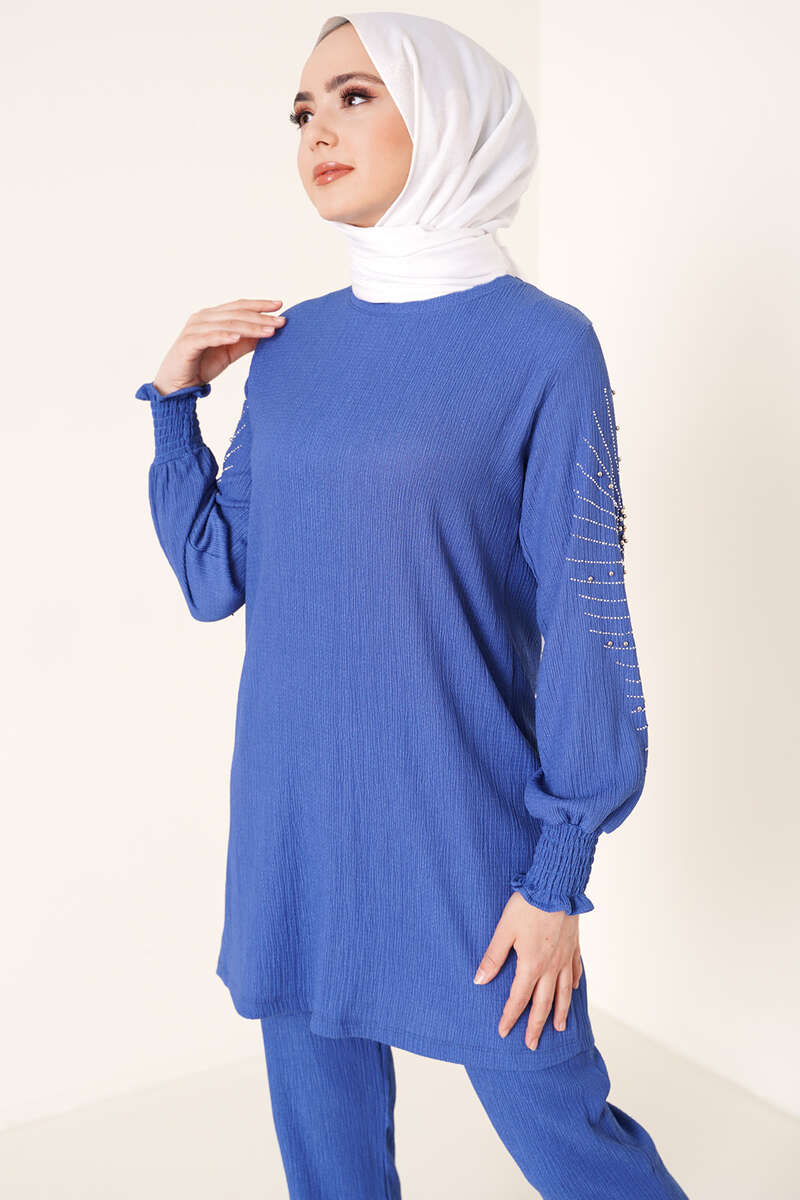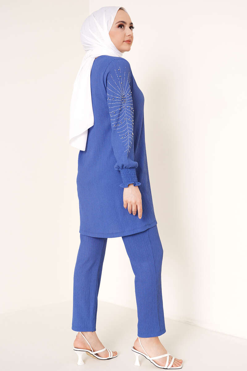 Kolları Taşlı Bürümcük İkili Takım İndigo