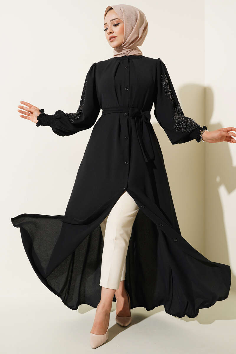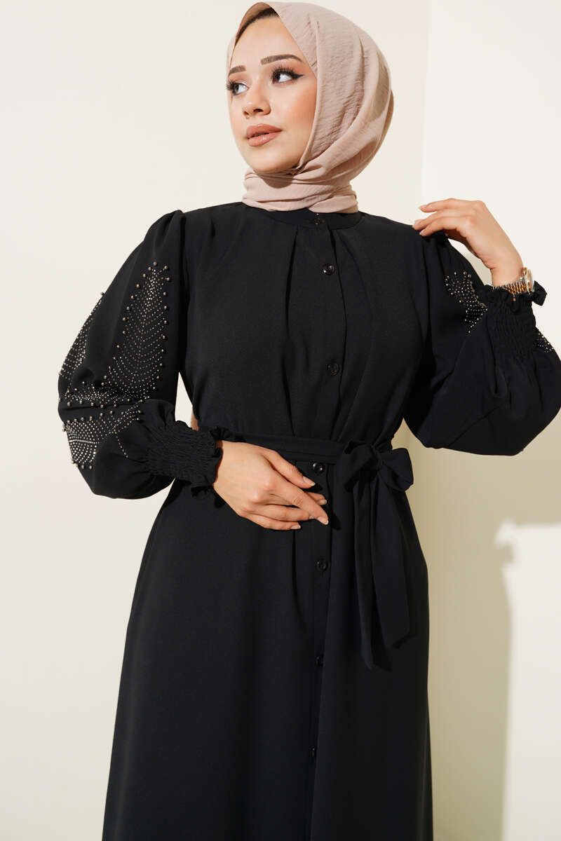 Yeni sezon boydan düğmeli elbisemiz bu yaz favoriniz olacak. Elbisemizin kolları taş detaylarıyla süslenmiştir. Bilekleri gipeli olan elbisemizin kendi kumaşından kuşağı bulunmaktadır. Boydan düğmeli olan elbisemizin cepleri mevcuttur.