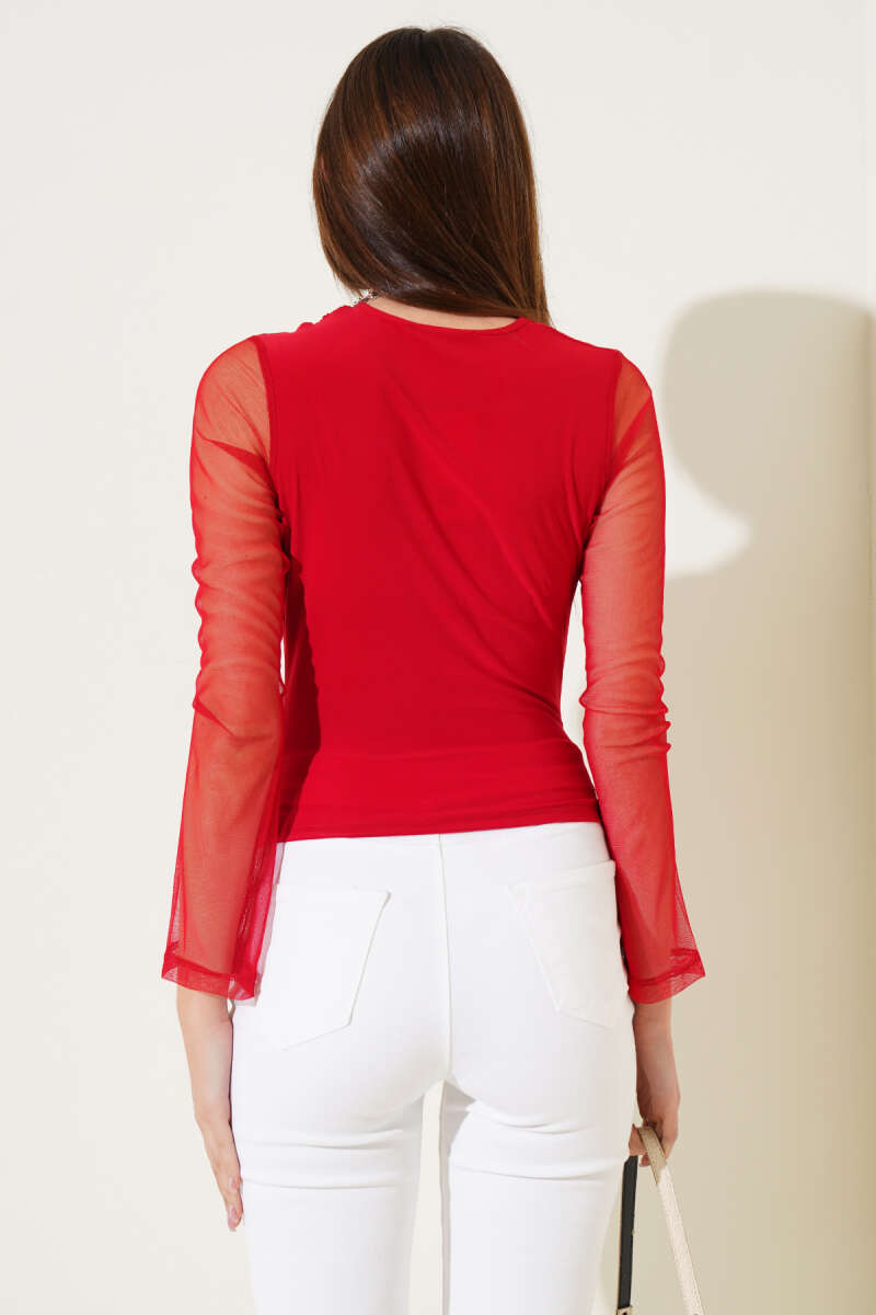 Gold Düğmeli Şeritli Triko Hırka Kırmızı