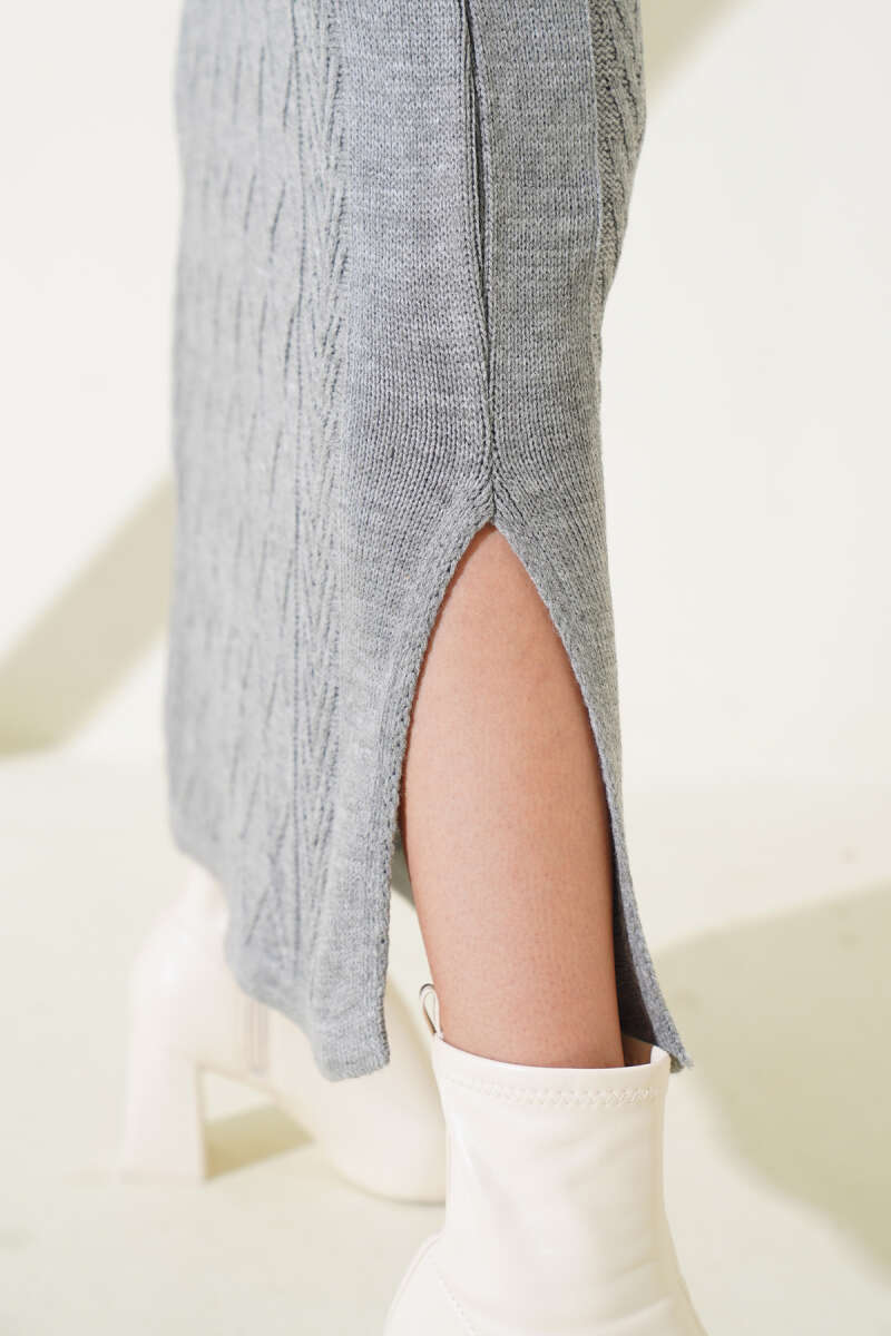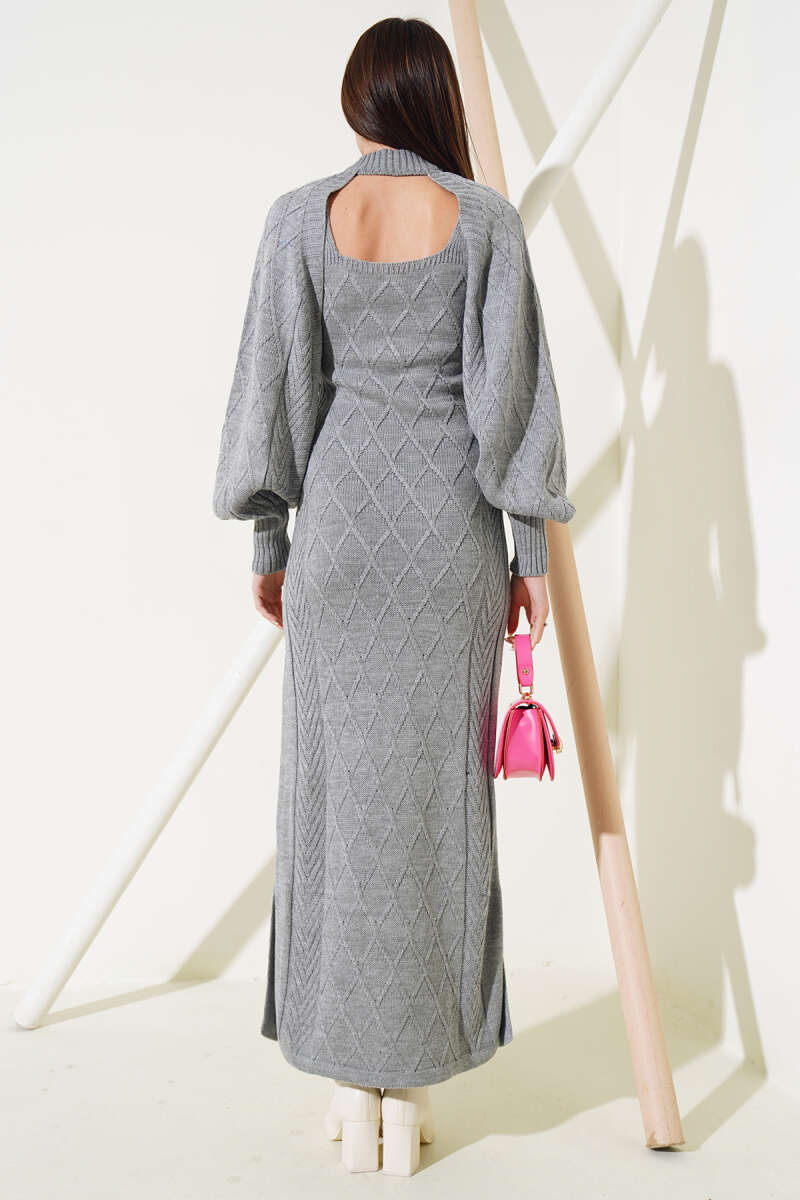 Bel Bağcıklı Bisiklet Yaka Triko Elbise Haki