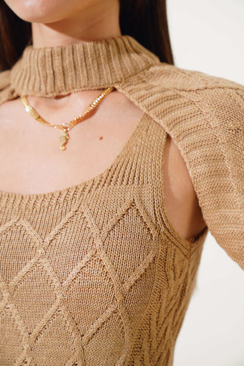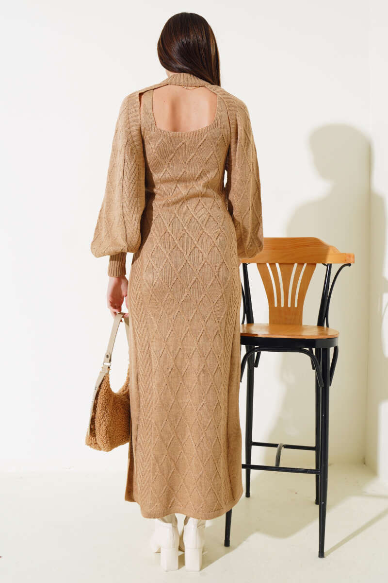 Kolluklu Elbiseli Triko İkili Takım Latte