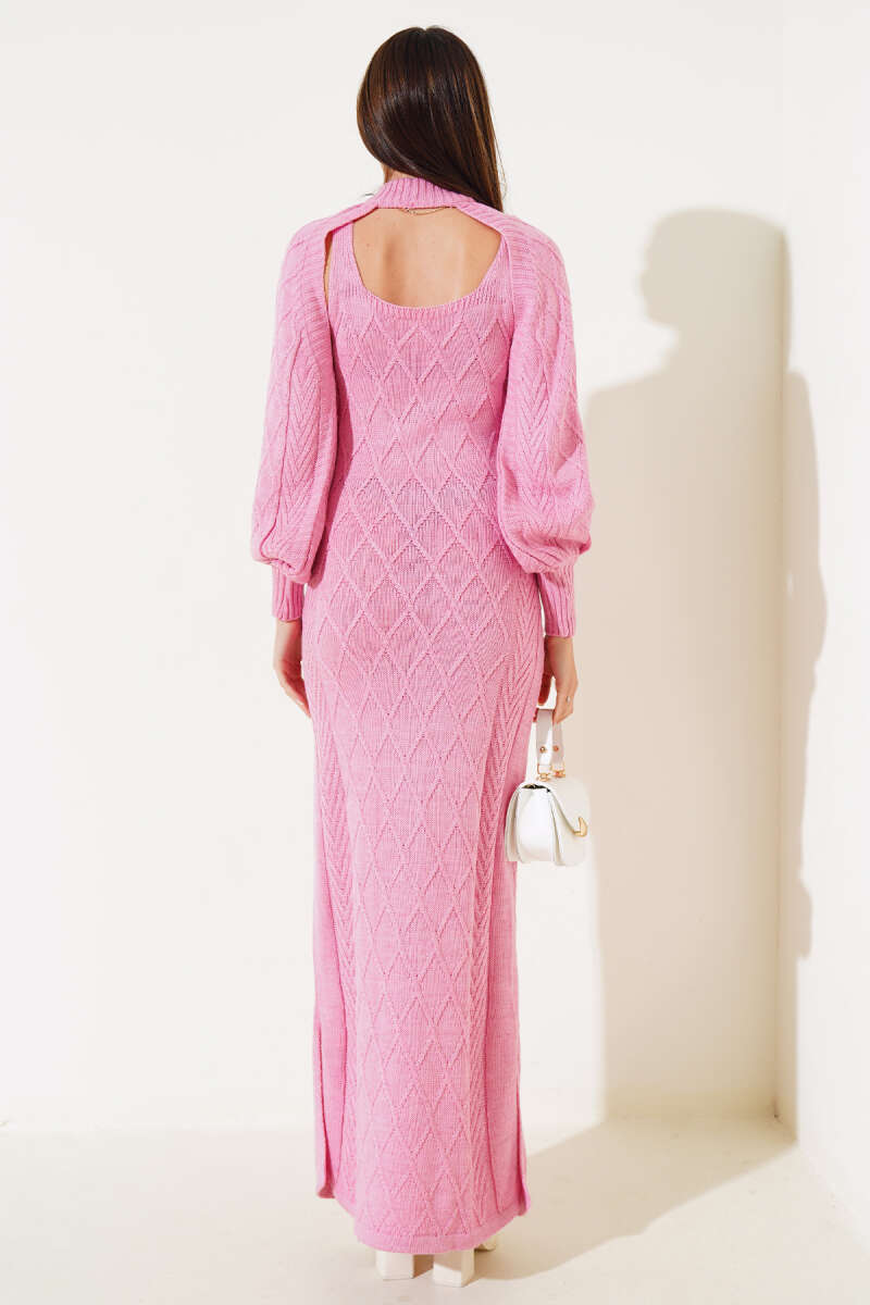 Uzun Kollu Yarım Fermuarlı Bluz Pembe