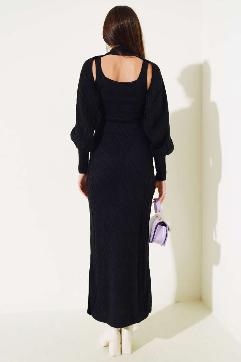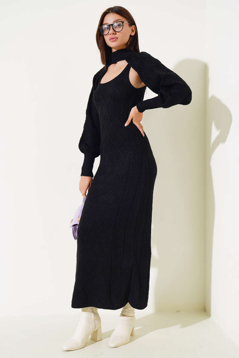 Bisiklet Yaka Fitilli Triko Elbise Taş