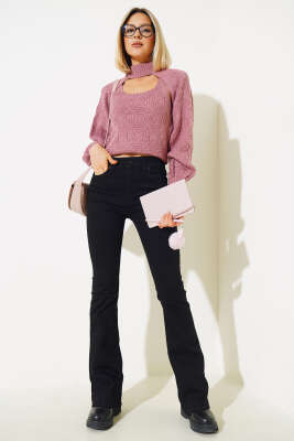 Balıkçı Yaka Fitilli Triko Tunik Siyah