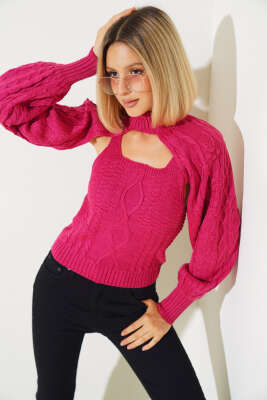 Saç Örgü Fırfırlı Triko Body Fuşya