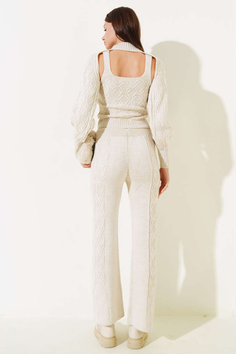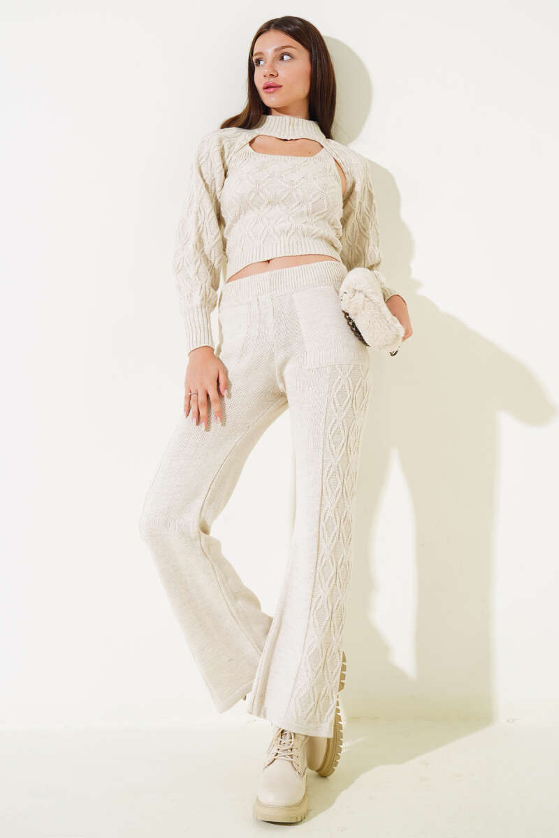 Örgü Büzgülü Uzun Triko Hırka Kahve