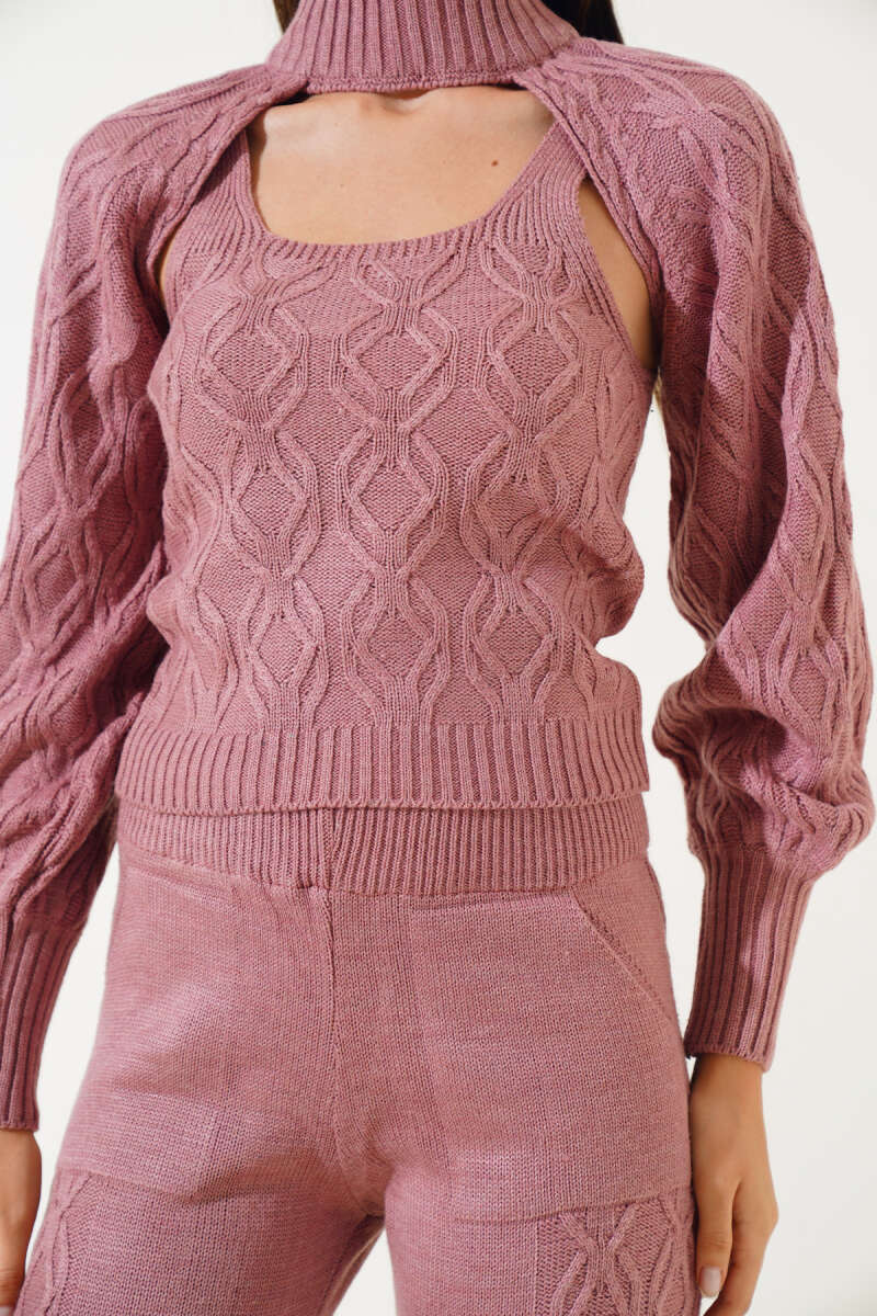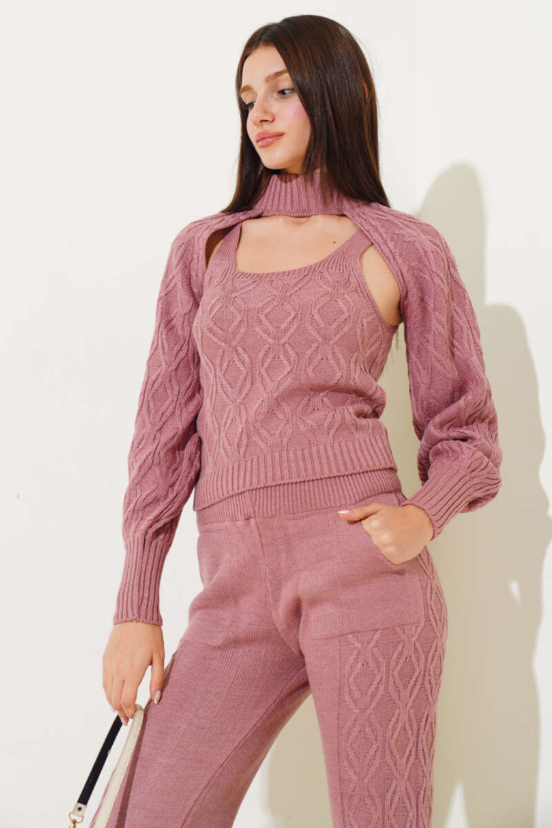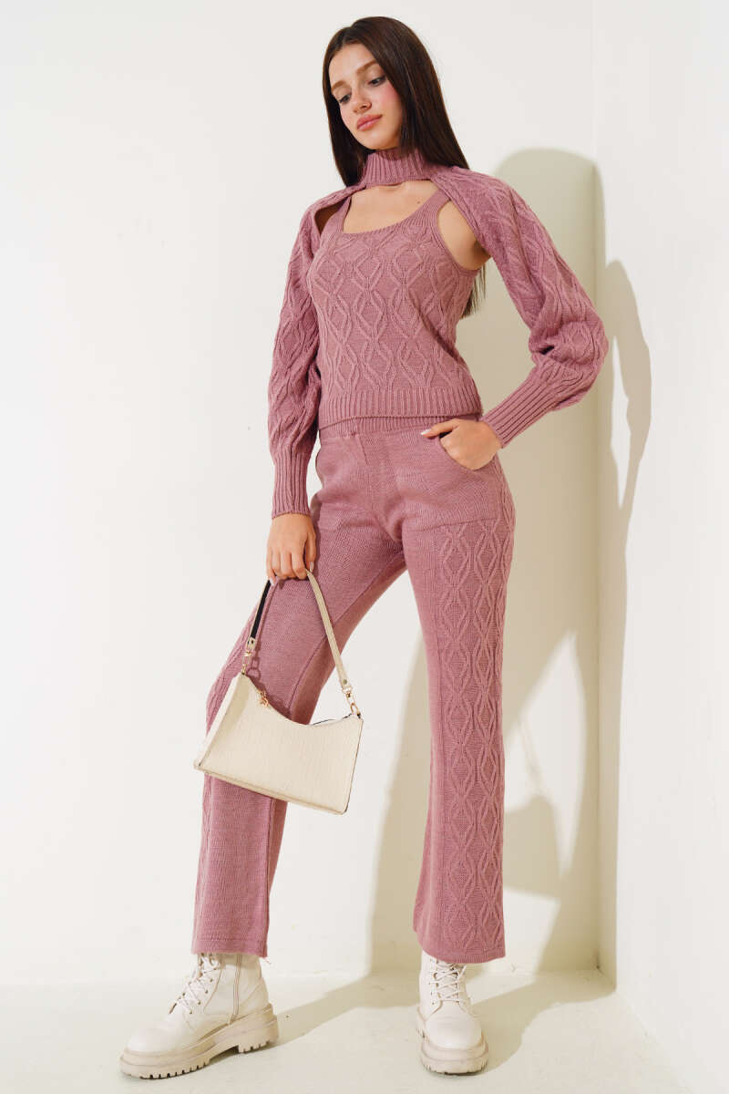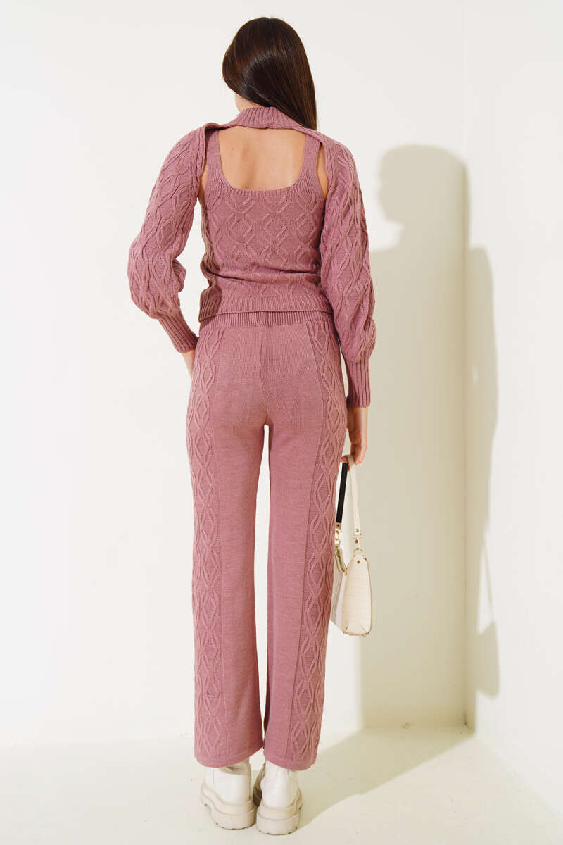 İnci Süslemeli Etekli Triko İkili Takım Siyah