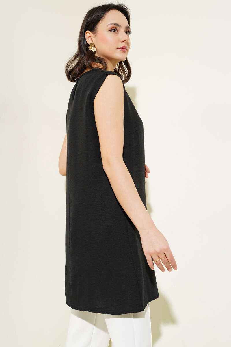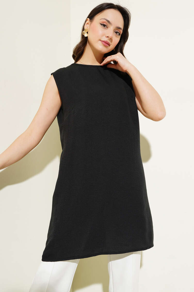 Kolsuz Bisiklet Yaka Uzun İçlik Siyah