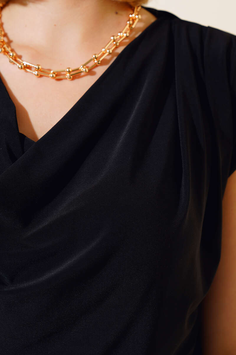 Sezonun şık parçası bluzumuz favorilerinizin arasında yerini alacak. Bluzum Kolsuz modeldir. Omuzları vatkalıdır. Bluzumuz degaje yakadır. Şık ve klasik tasarımıyla bluzumuz size çok yakışacak.