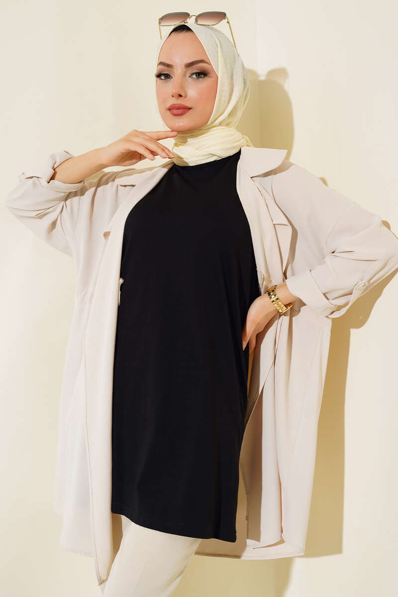 Üç Düğmeli Kruvaze Yaka Bej Trençkot