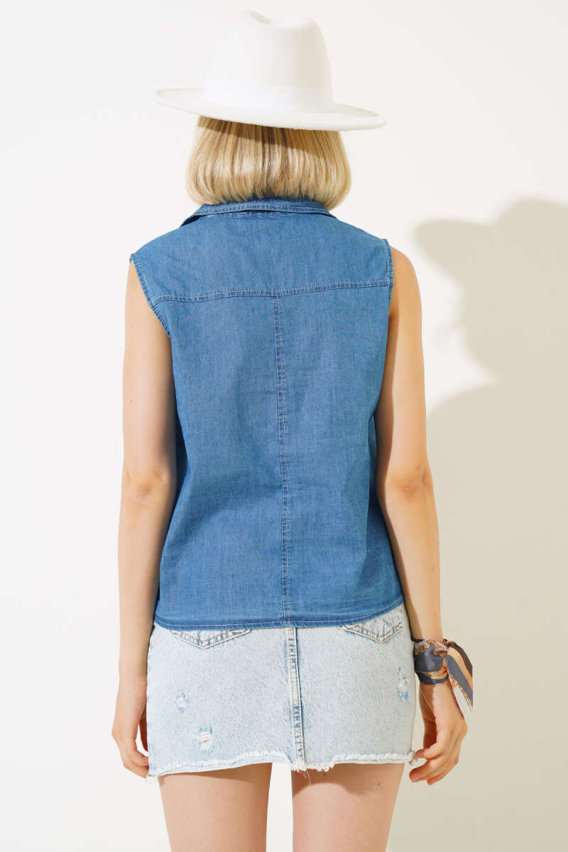 Baklava Taşlı Mom Jeans Pantolon Mavi