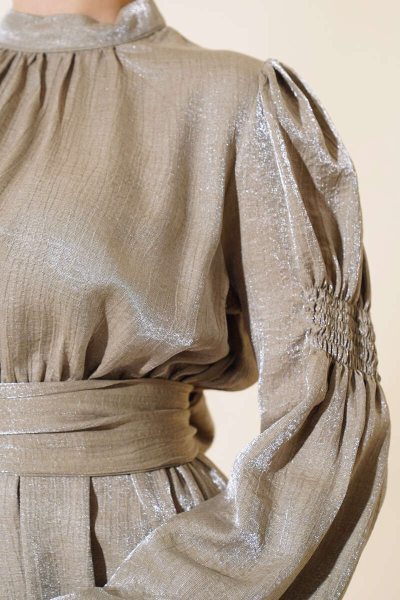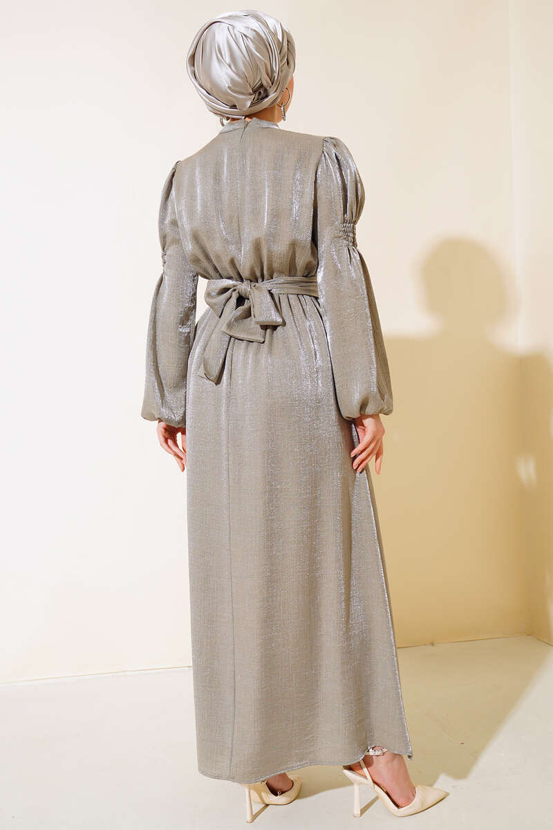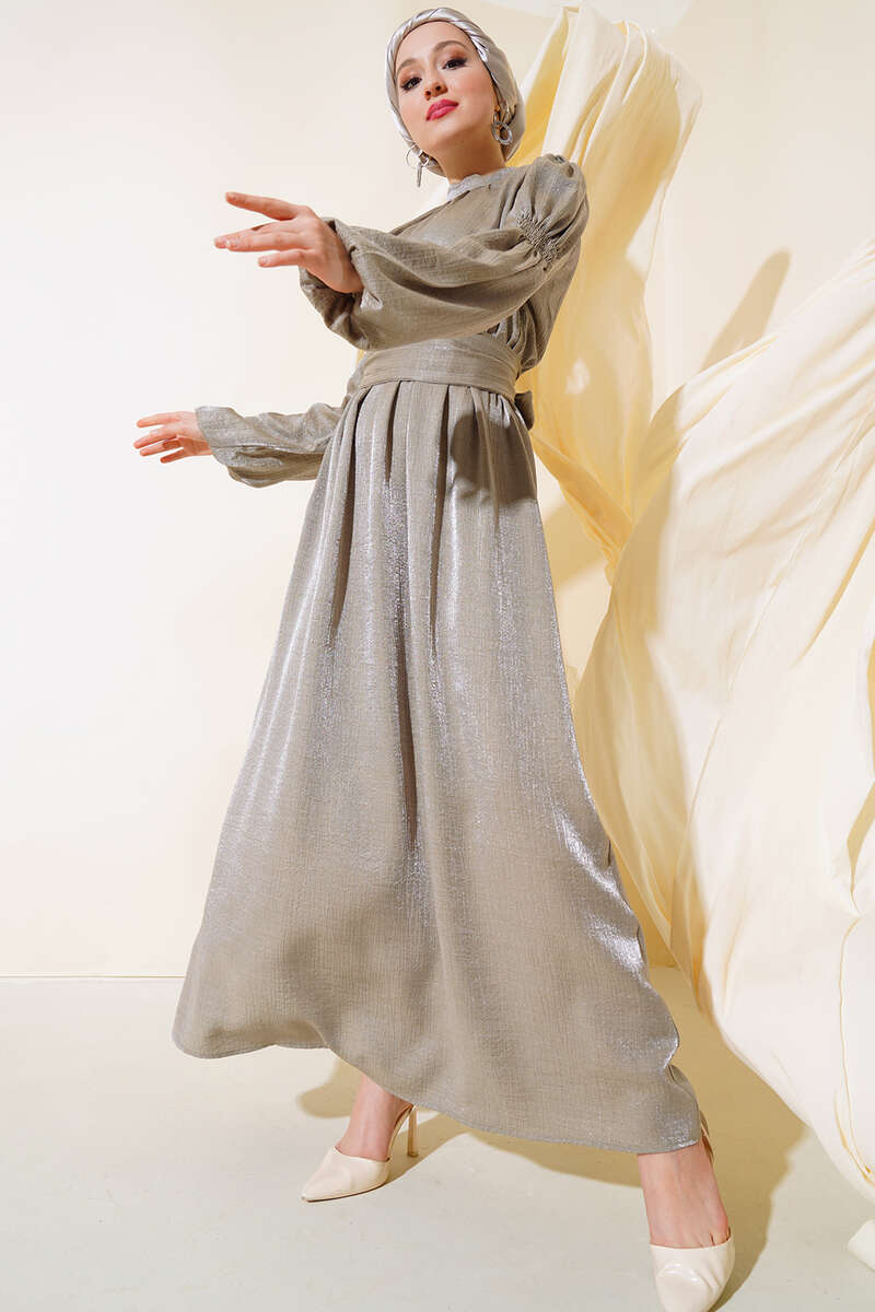 Yeni sezon elbise modelimizi çok seveceksiniz. Parlak elbise modelimiz size çok yakışacak. Kolları büzgülüdür. Kol bilekleri lastiklidir. Belden kuşak bağlamalıdır. Kloş elbise modelimiz şık görüntüsüyle tüm gözler üzerinizde olacak.